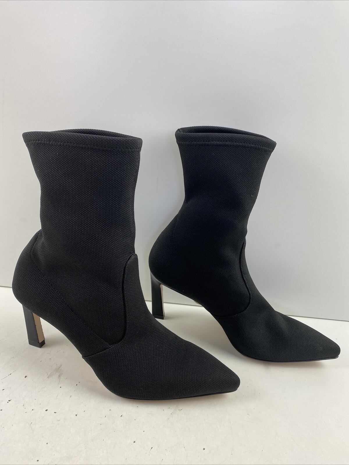 Stuart Weitzman Black Suede Pointed Toe Pull On Heeled Booties Women’s Size 6 M - Ufashion