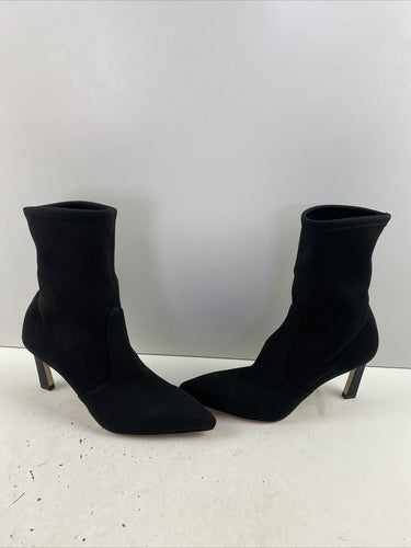 Stuart Weitzman Black Suede Pointed Toe Pull On Heeled Booties Women’s Size 6 M
