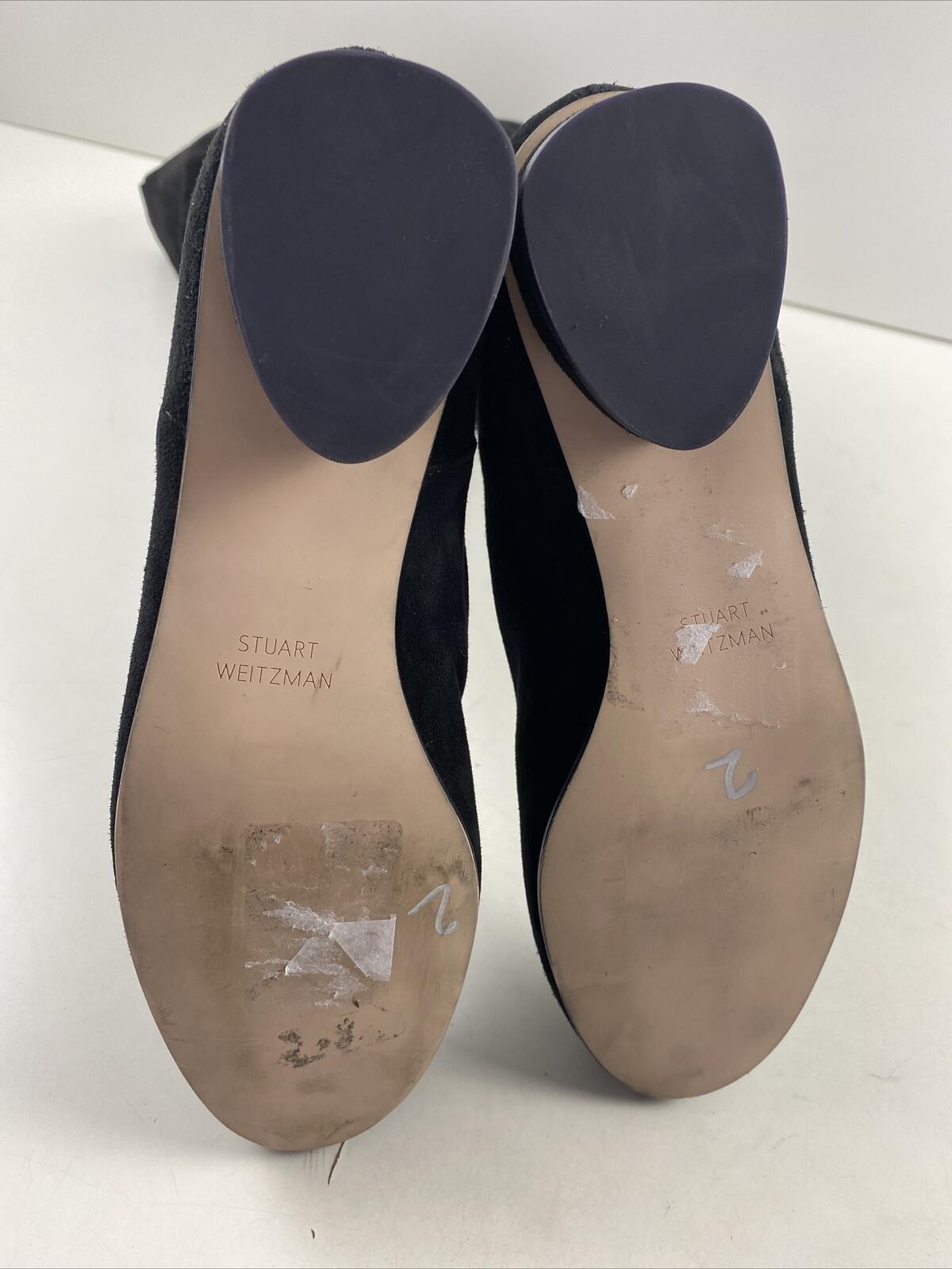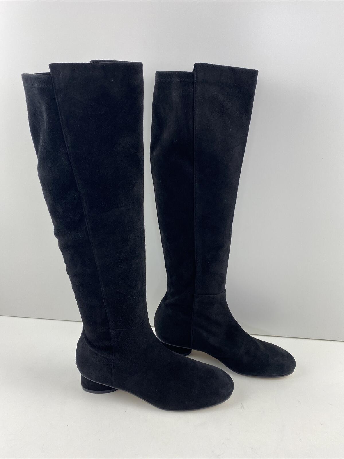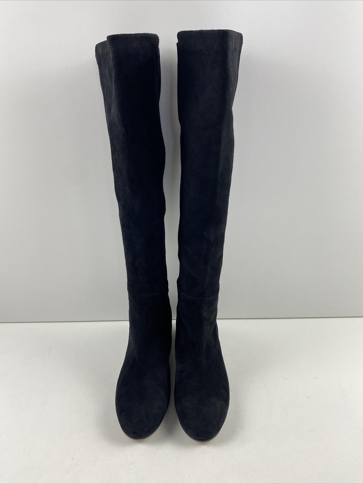 Stuart Weitzman Black Suede Pull On Block Heel Over The Knee Boots Women’s 6 M