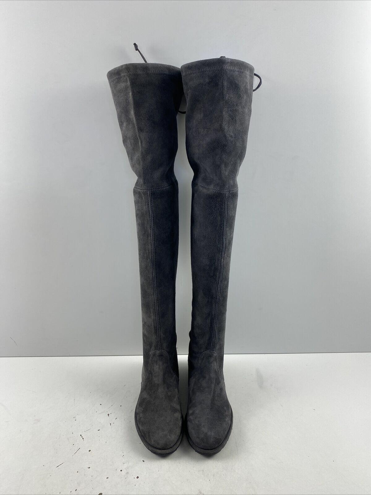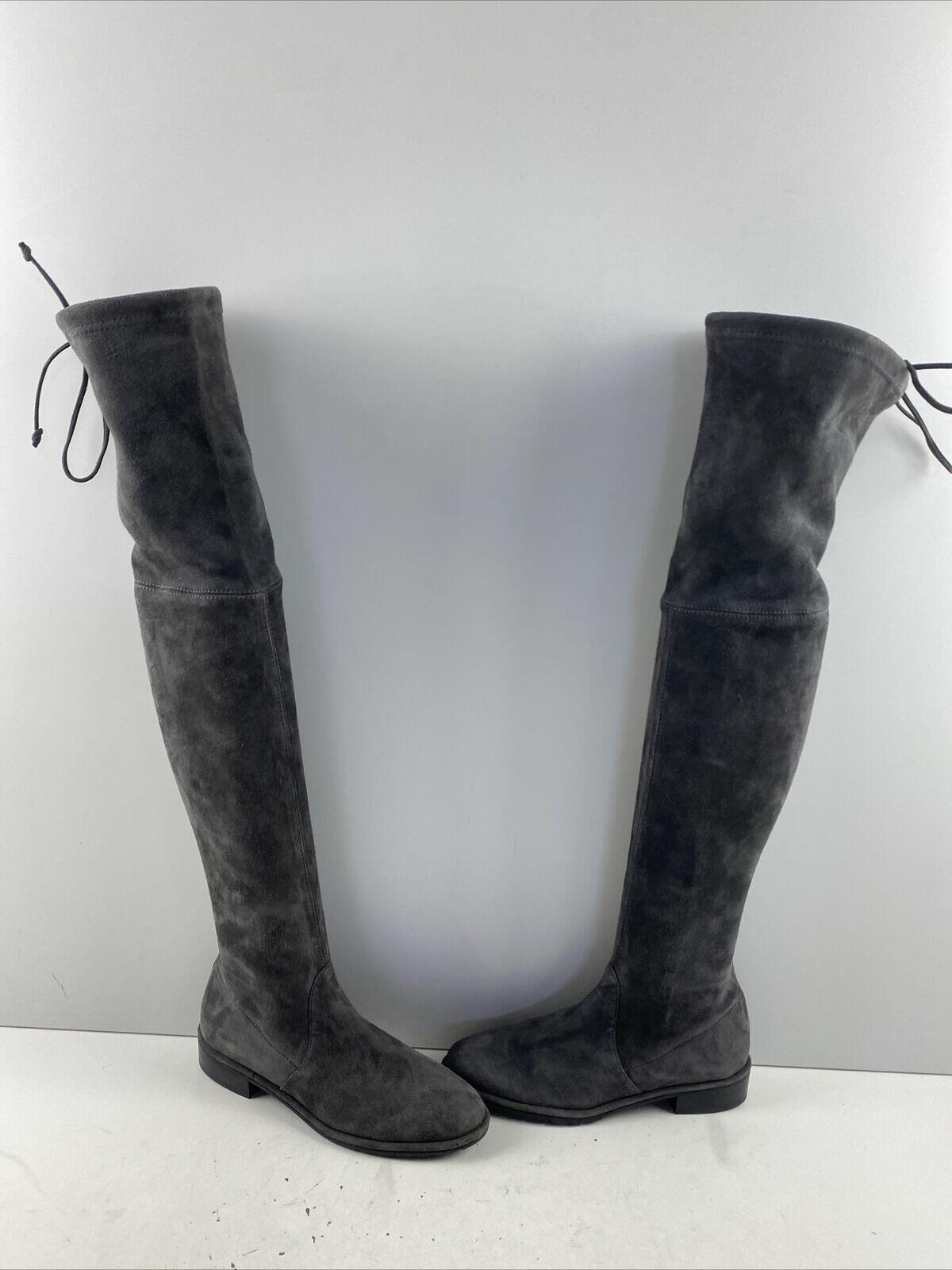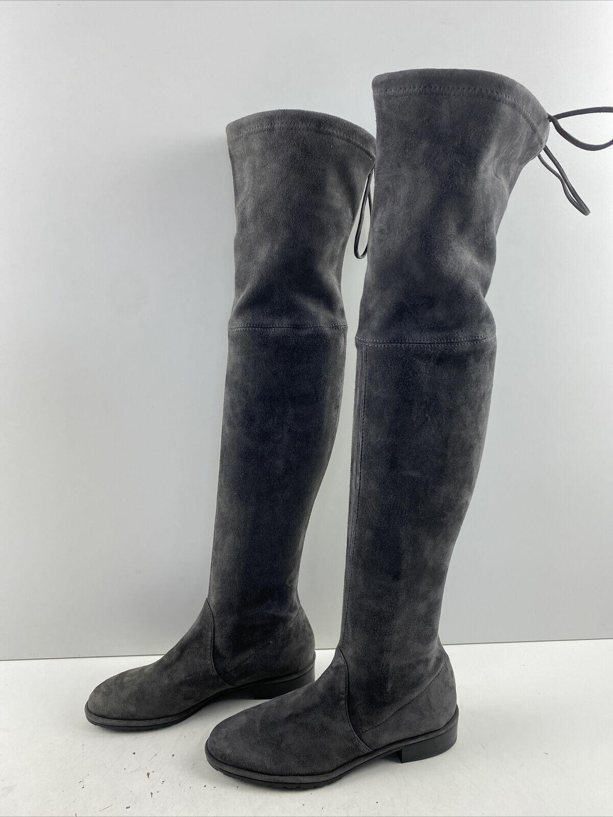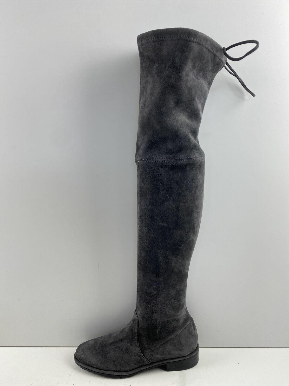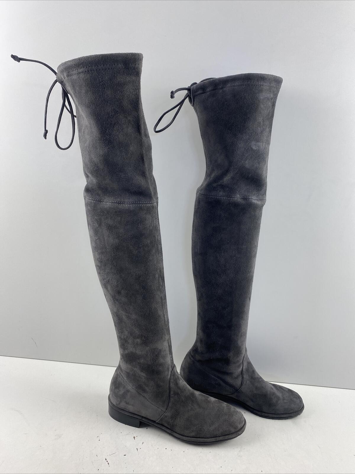 Stuart Weitzman Gray Suede Round Toe Pull On Back Tie Over The Knee Boots Size 4 - Very Good - Ufashion Stuart Weitzman Gray Suede Round Toe Pull On Back Tie Over The Knee Boots Size 4 - Very Good - Ufashion