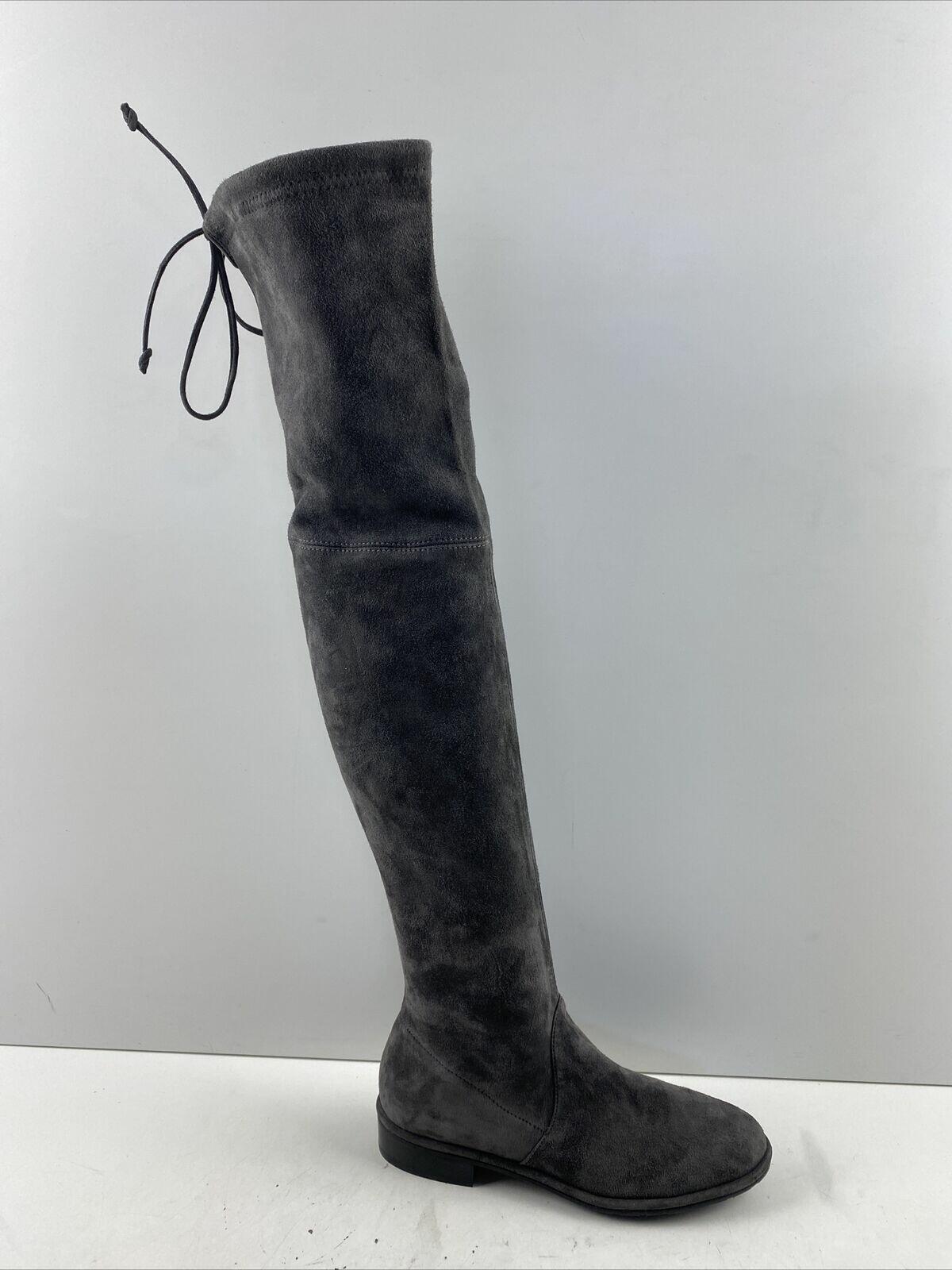 Stuart Weitzman Gray Suede Round Toe Pull On Back Tie Over The Knee Boots Size 4 - Very Good - Ufashion