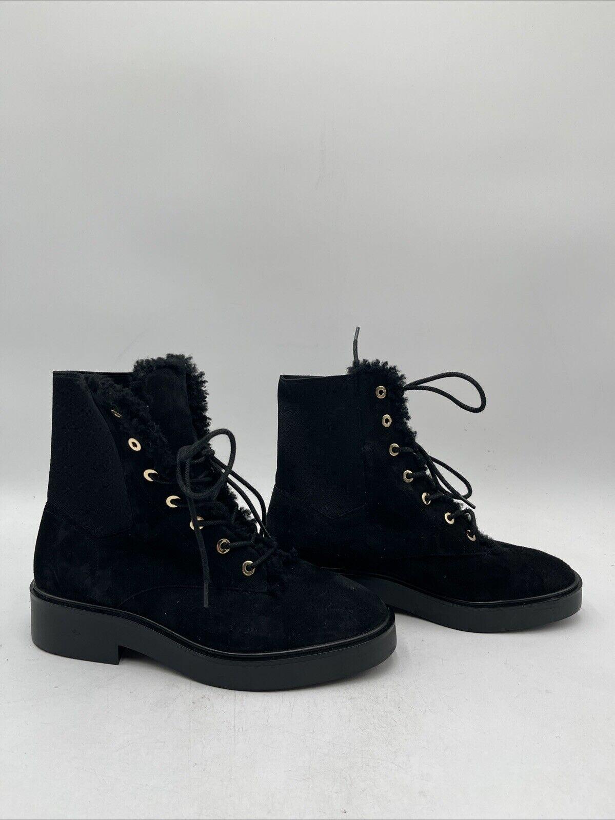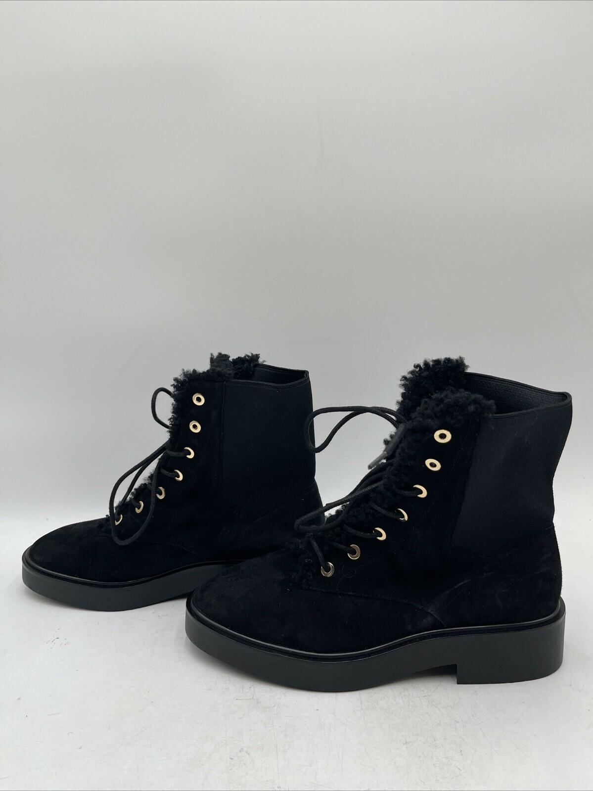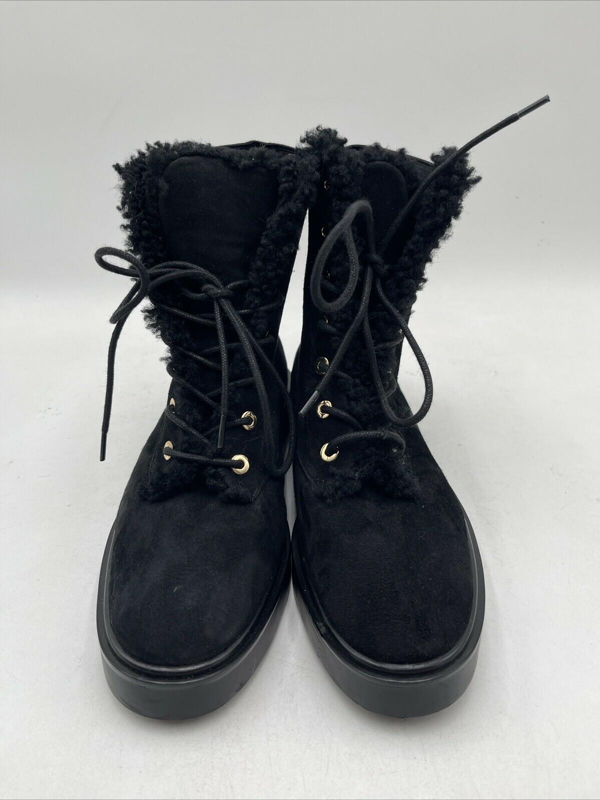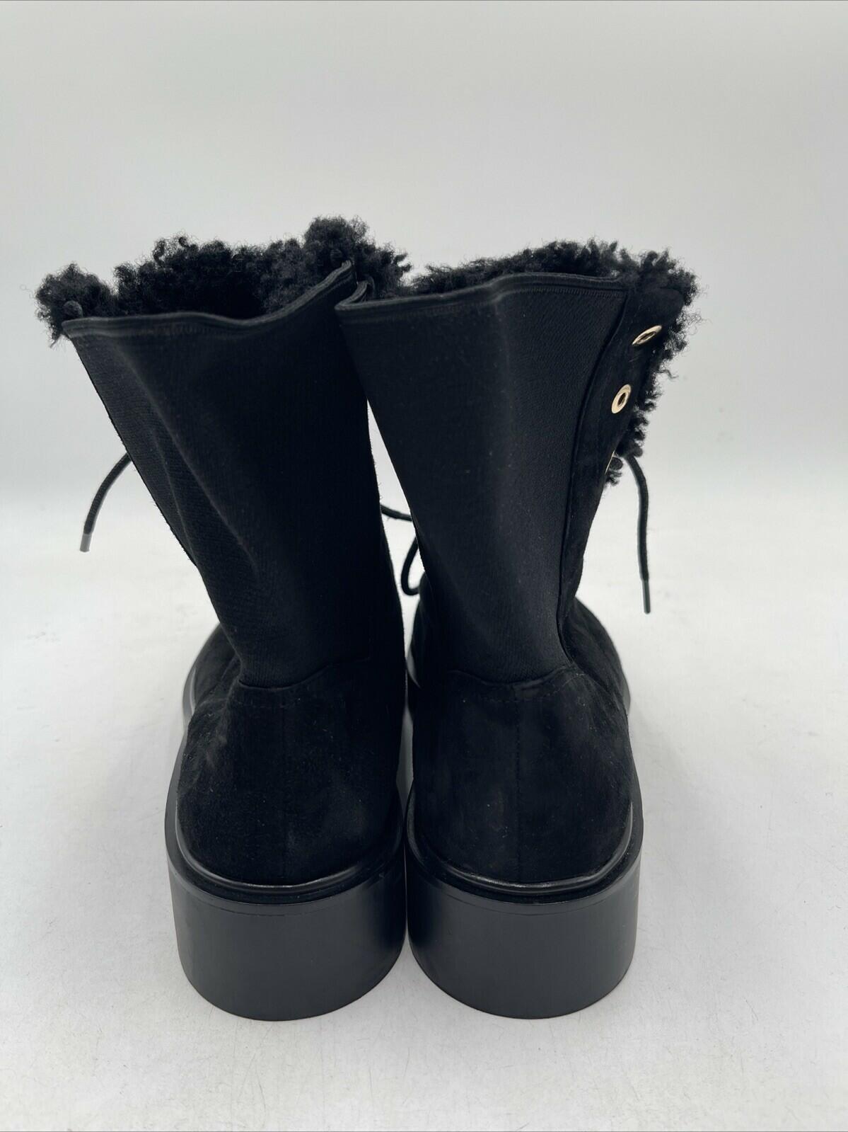 Stuart Weitzman Henley Chill Black Suede Lace Up Faux Fur Lined Ankle Boots 7B - Very Good