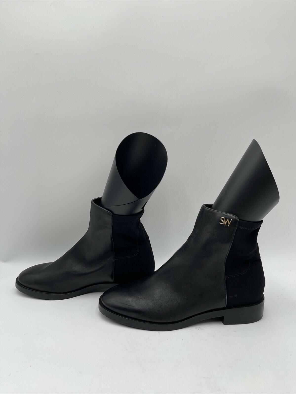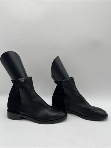 Stuart Weitzman KYE CITY Black Leather/Fabric Pull On Ankle Booties Women’s 6B - Very Good
