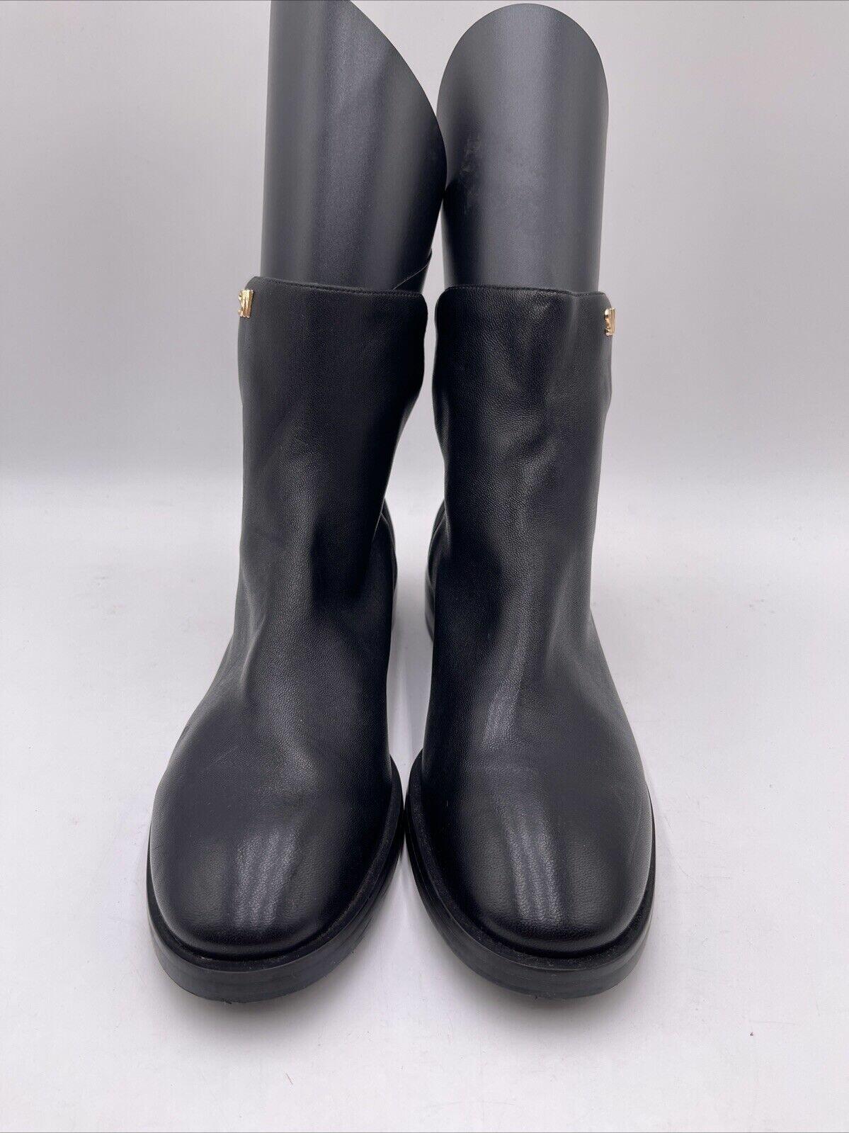 Elevate your shoe game with these stylish Stuart Weitzman KYE CITY ankle booties. Crafted with a sleek black leather upper and fabric lining, these pull-on boots feature a round toe and low block heel, making them the perfect choice for any city-themed outfit. The boots are available in women's size 6B and 36.5B, and the shoe width is medium.