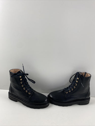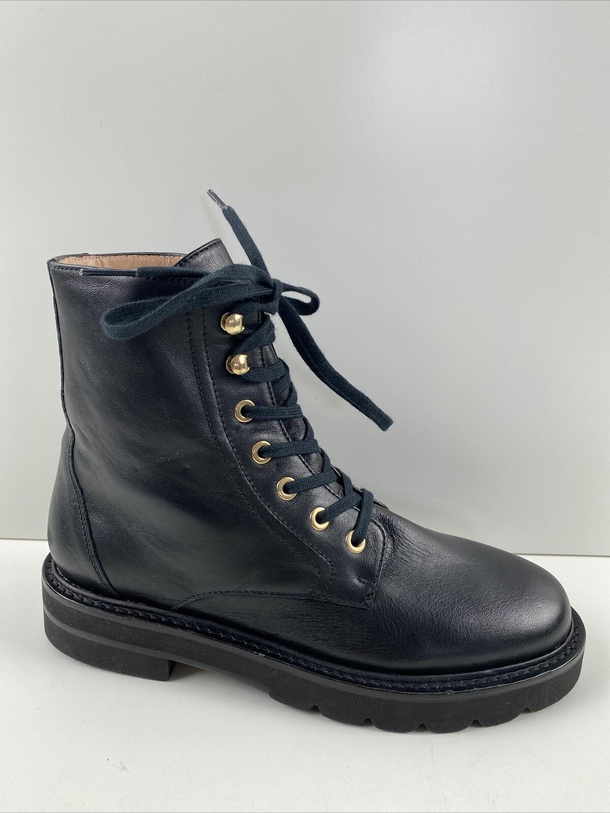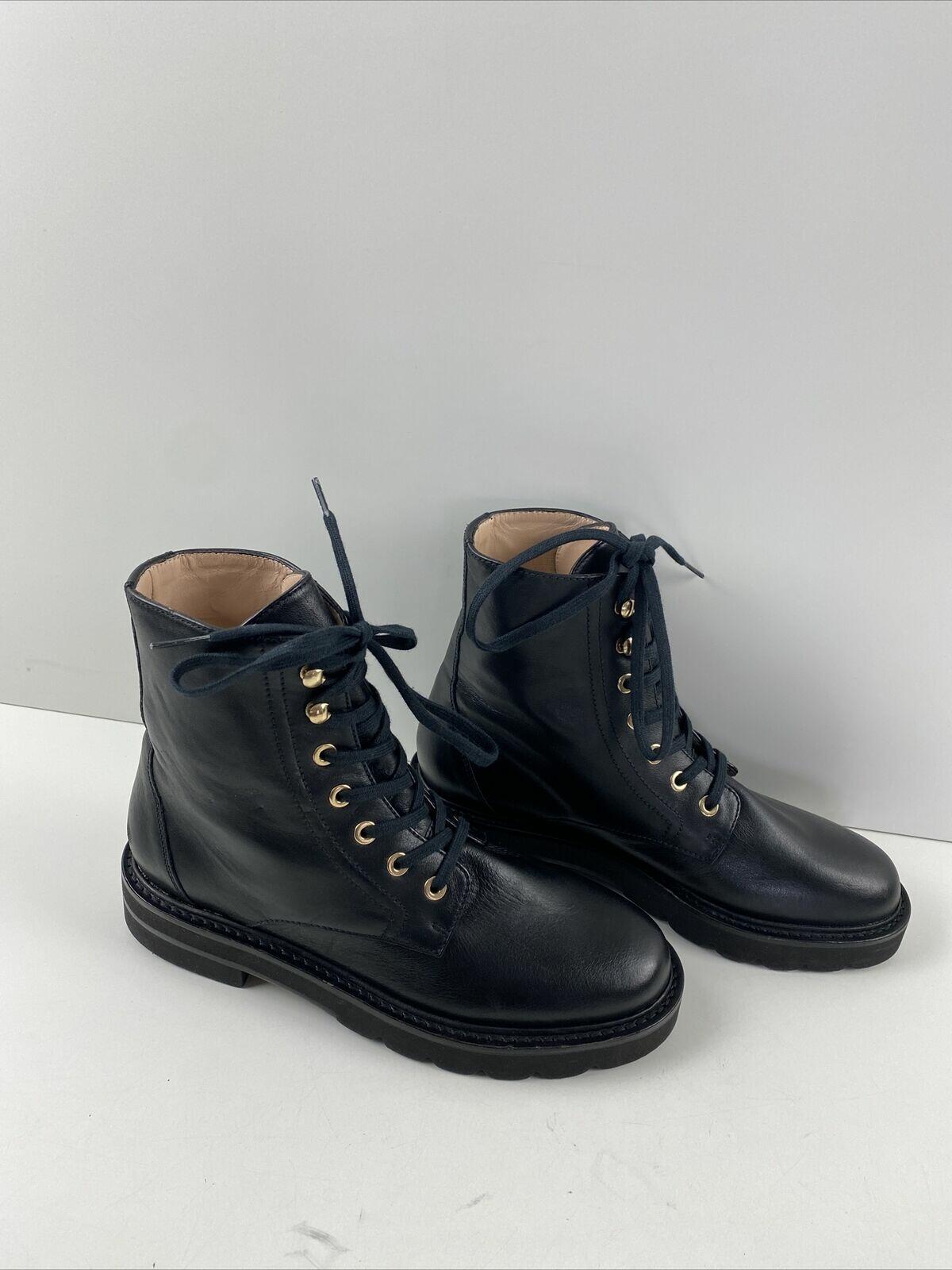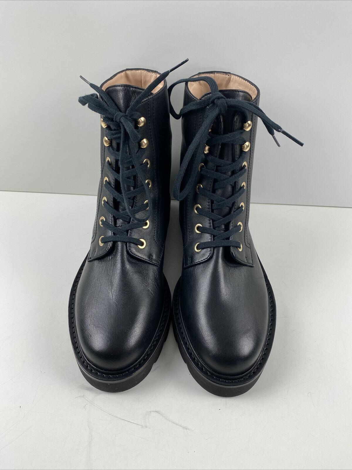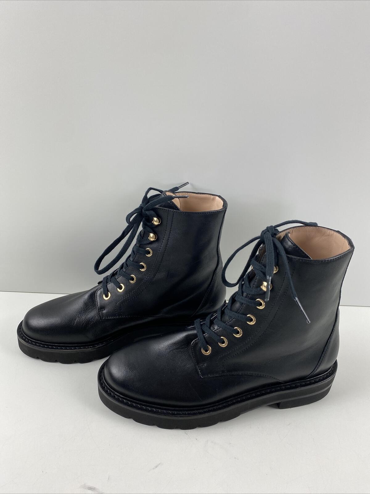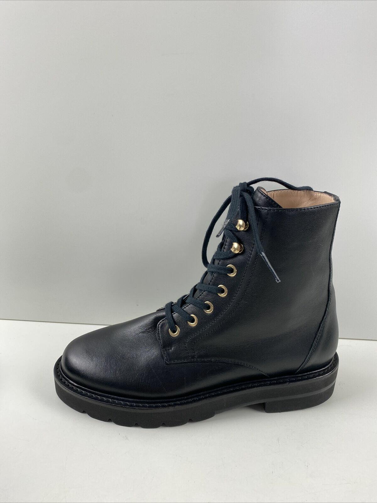 Stuart Weitzman MILA LIFT Black Leather Lace Up Combat Ankle Boots Size 5.5 B