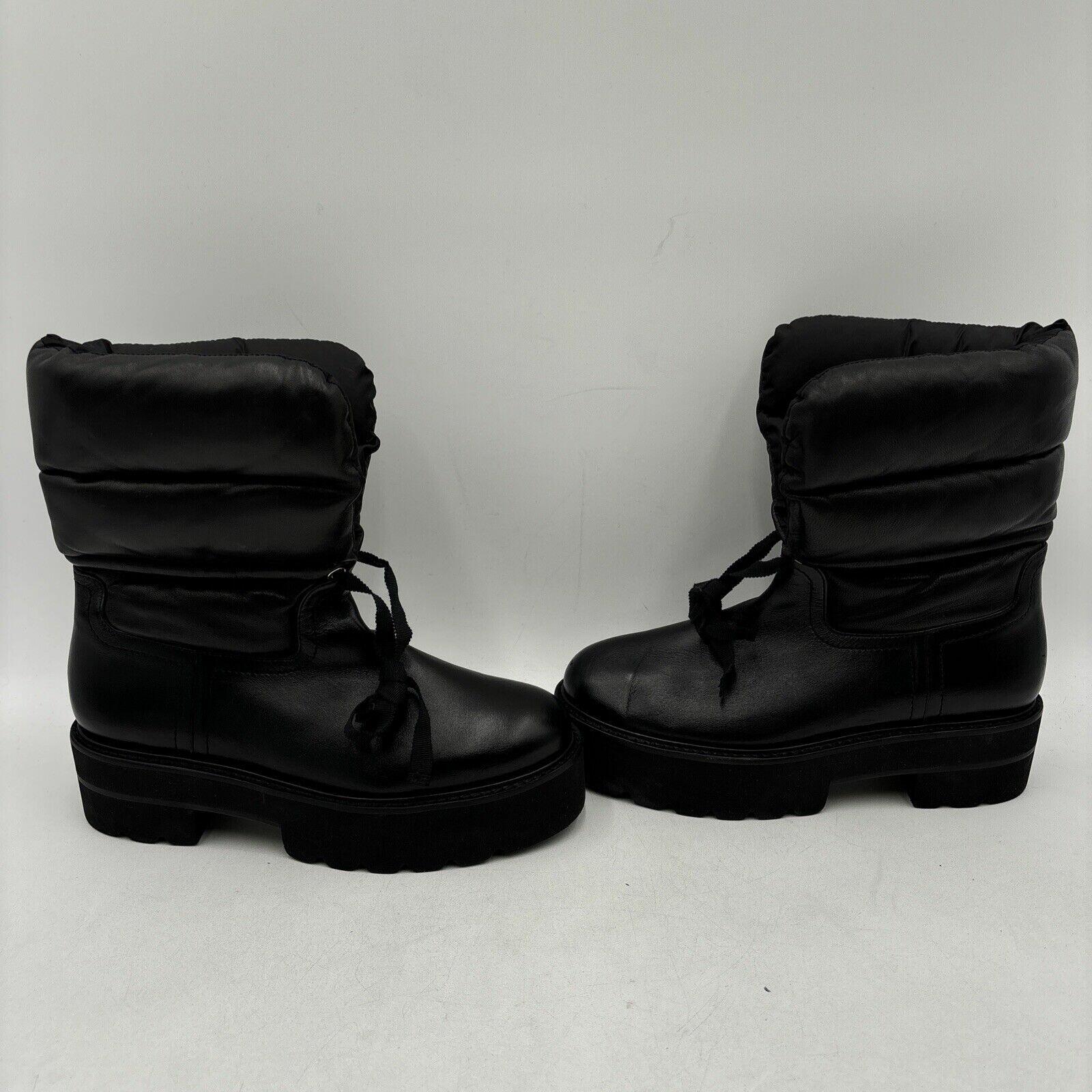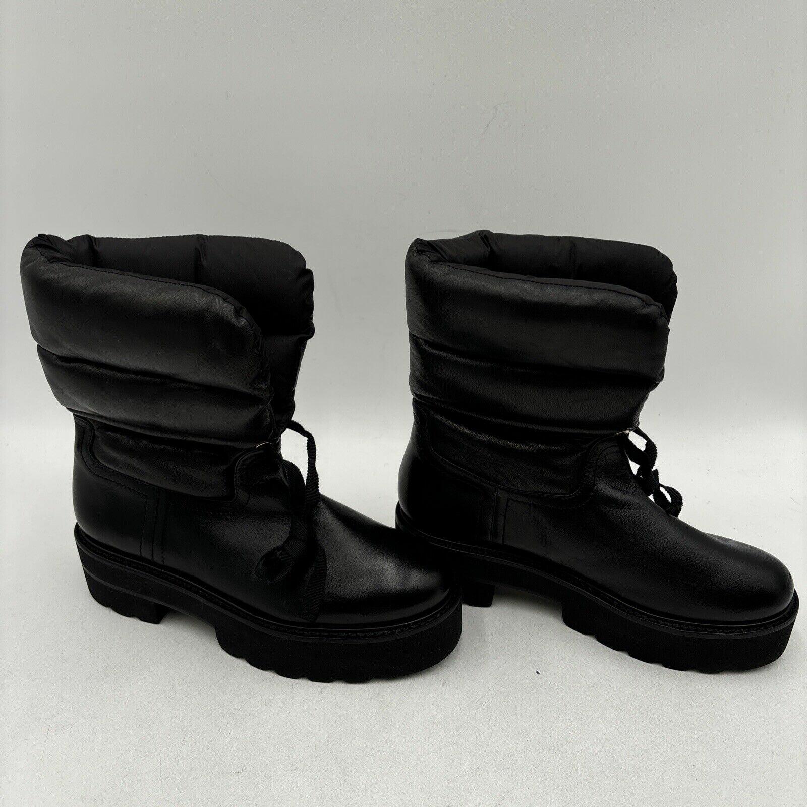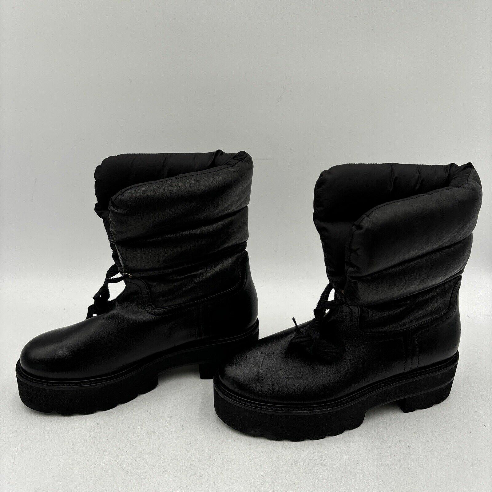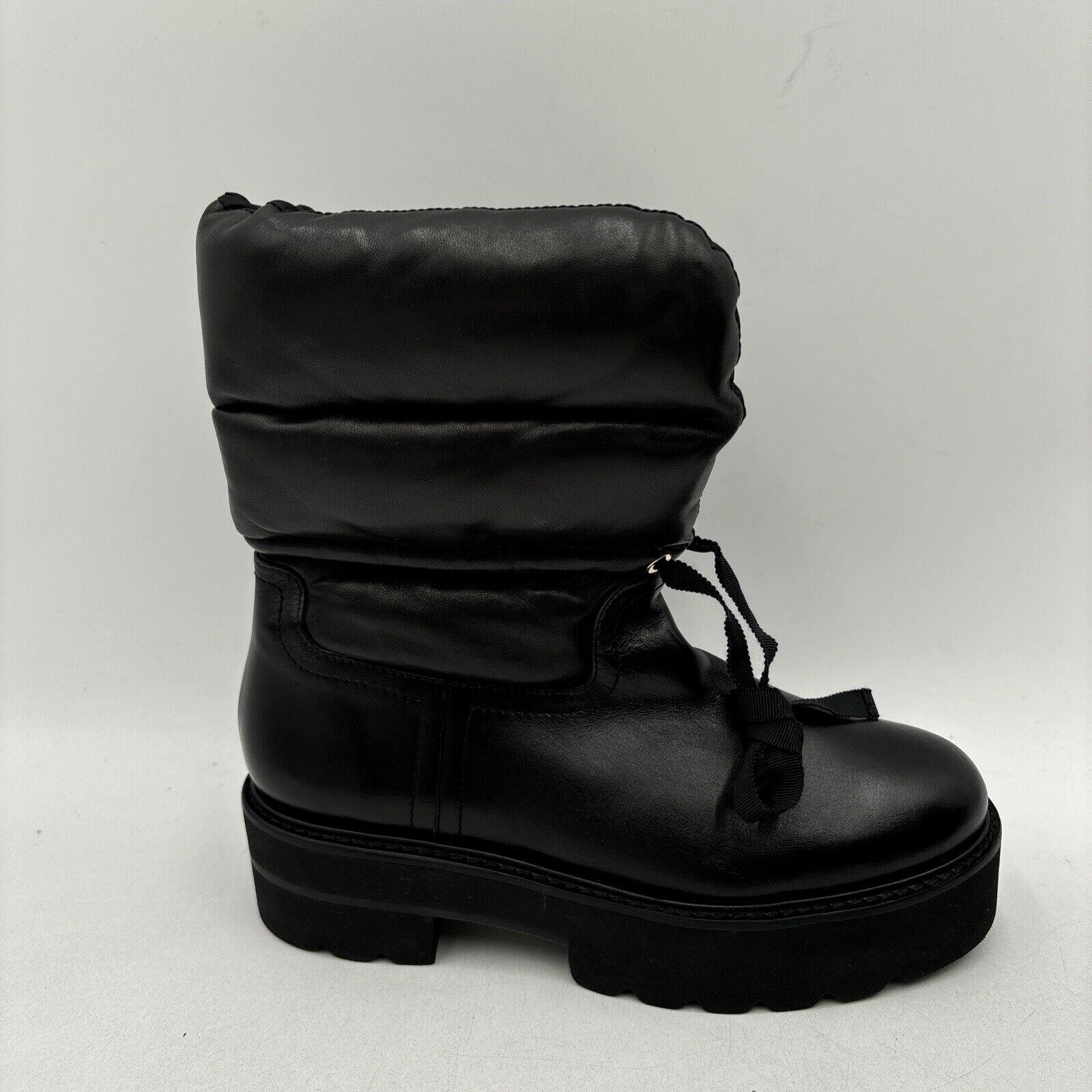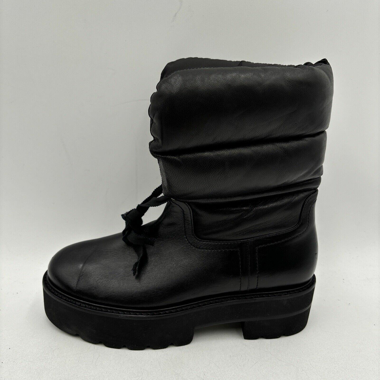 Stuart Weitzman TYLER UltraLift Black Leather Lugsole Pull On Booties, Size 6B - Very Good - Ufashion