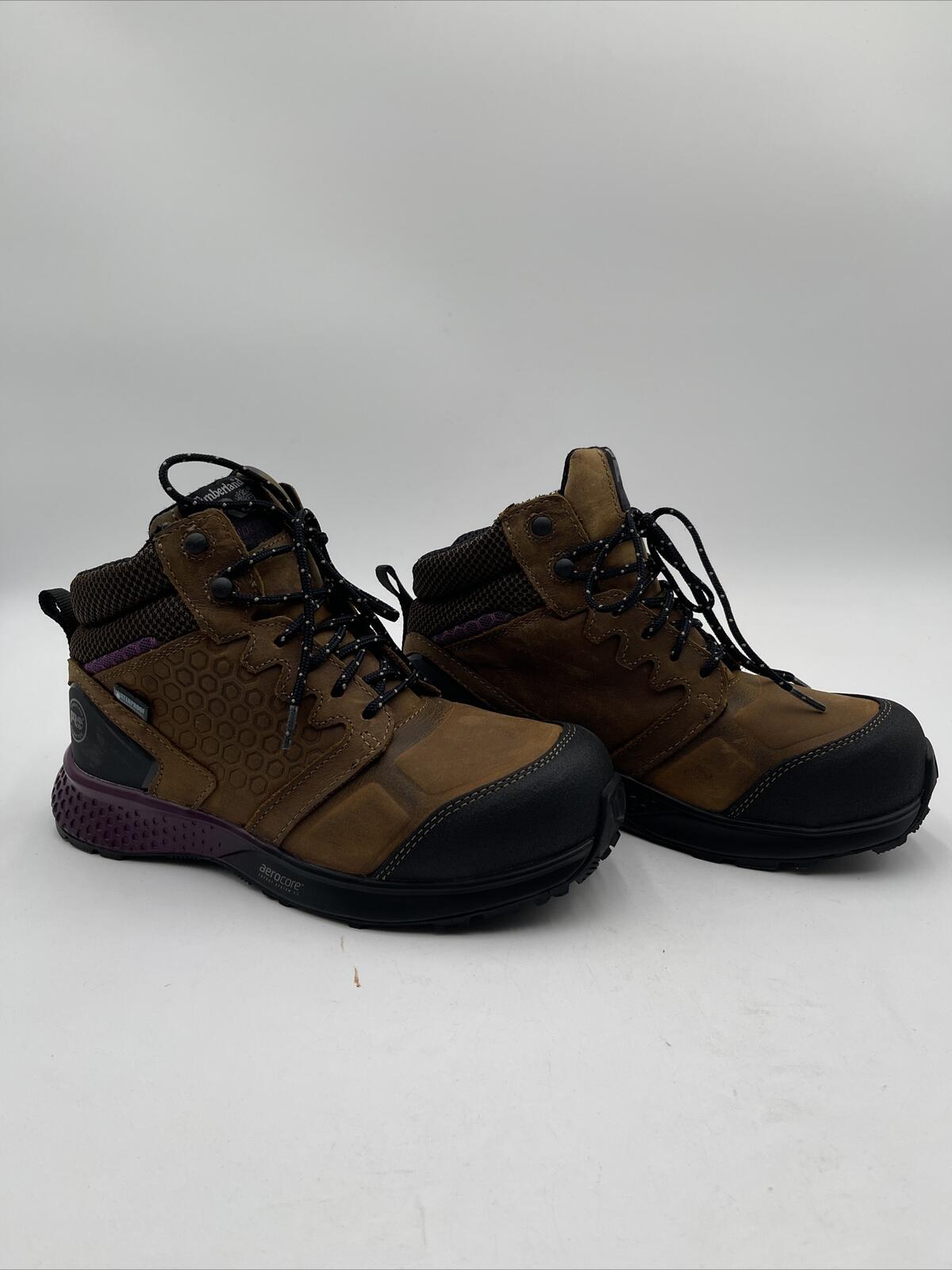 Timberland PRO Brown Leather Lace Up COMP Toe Waterproof Work Boots Women’s 7