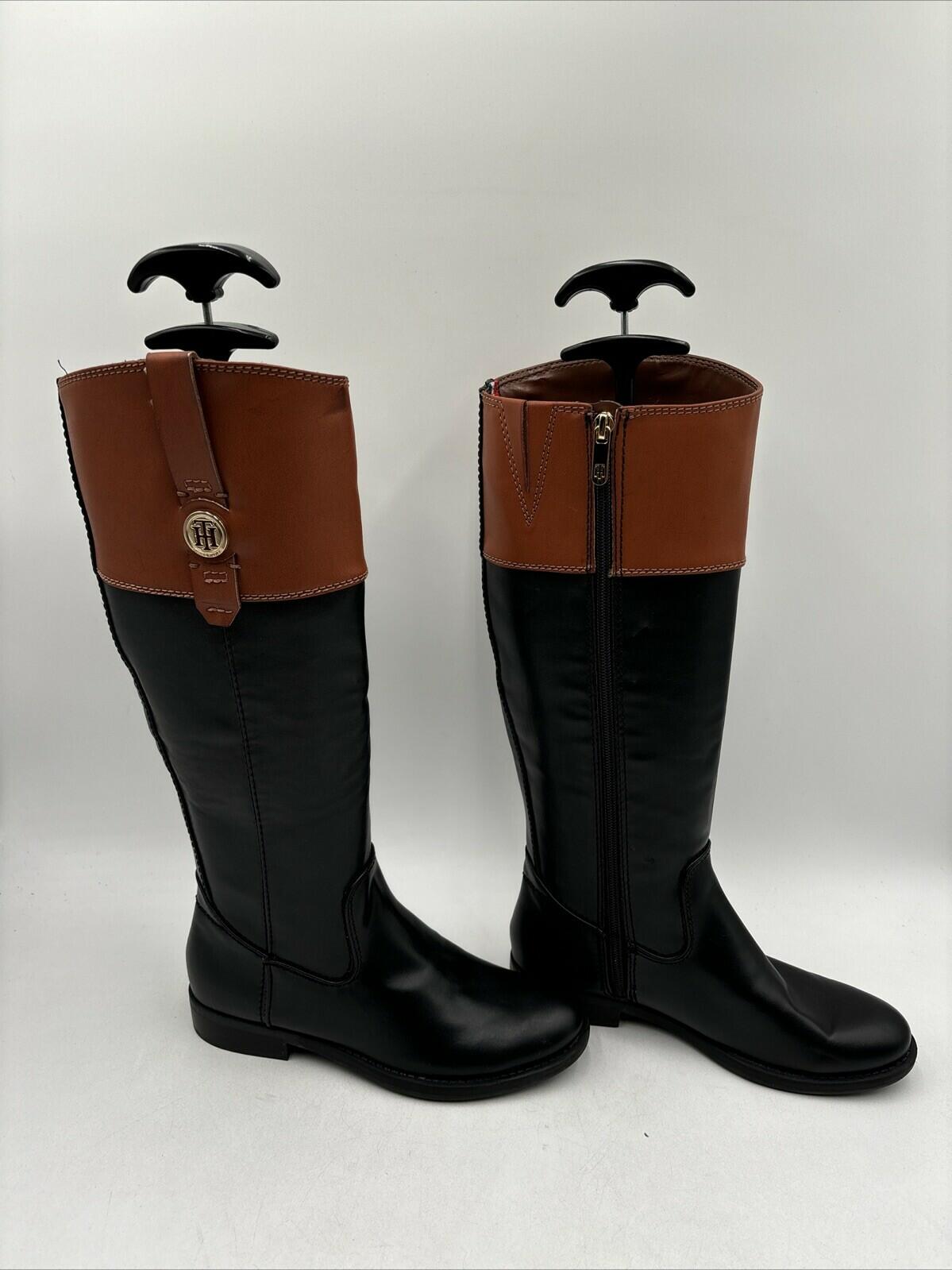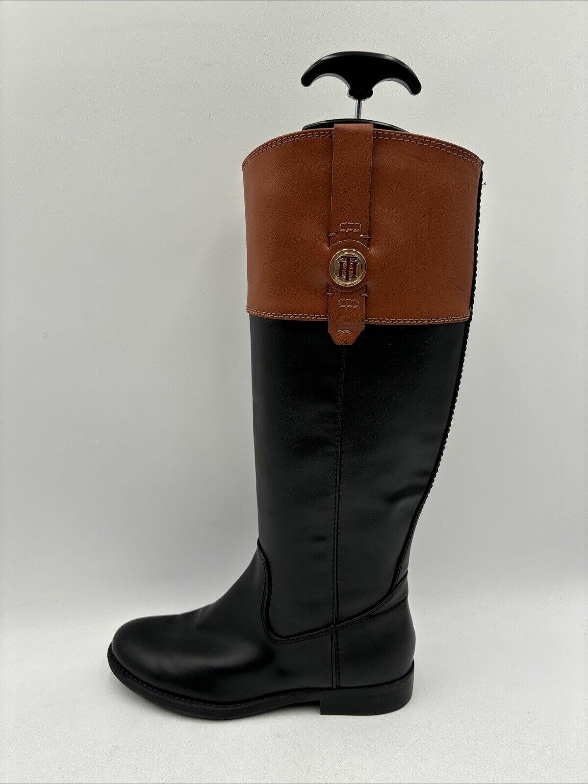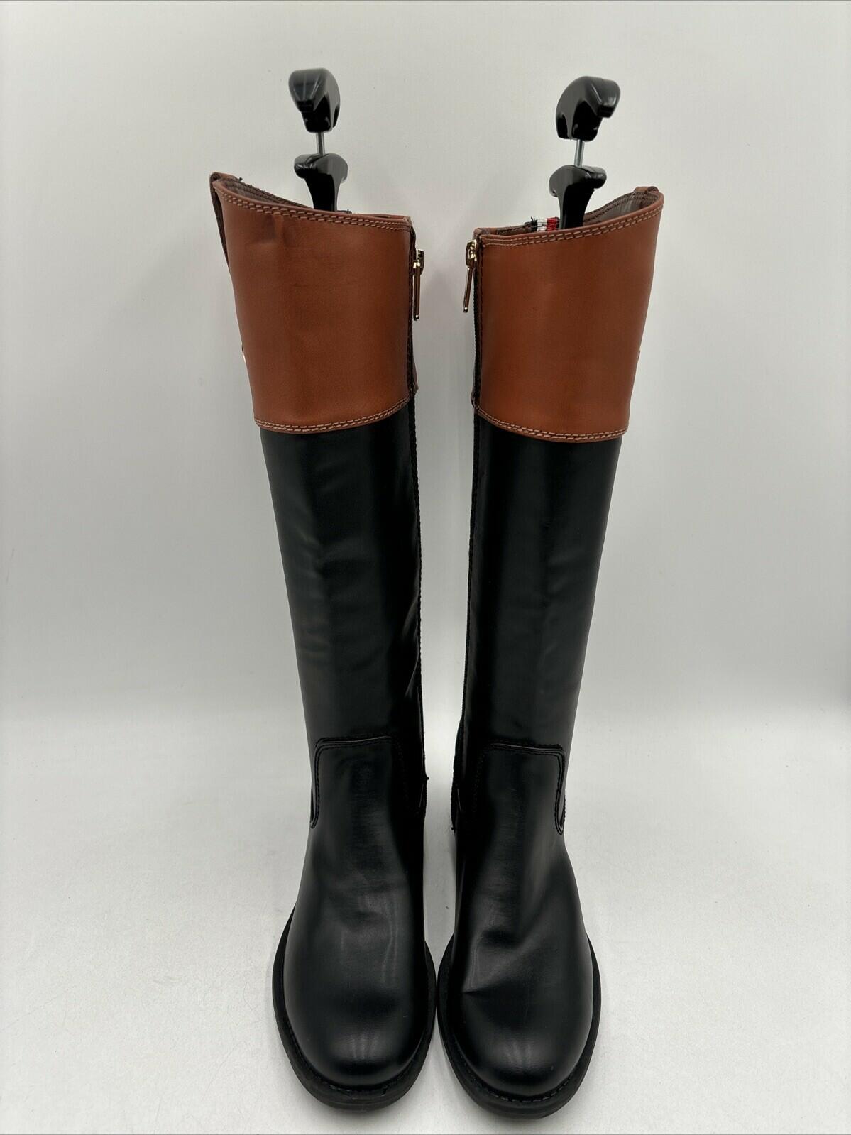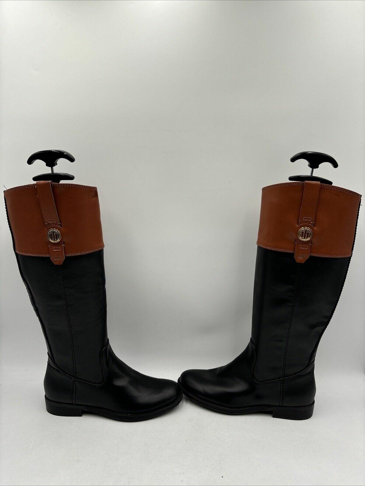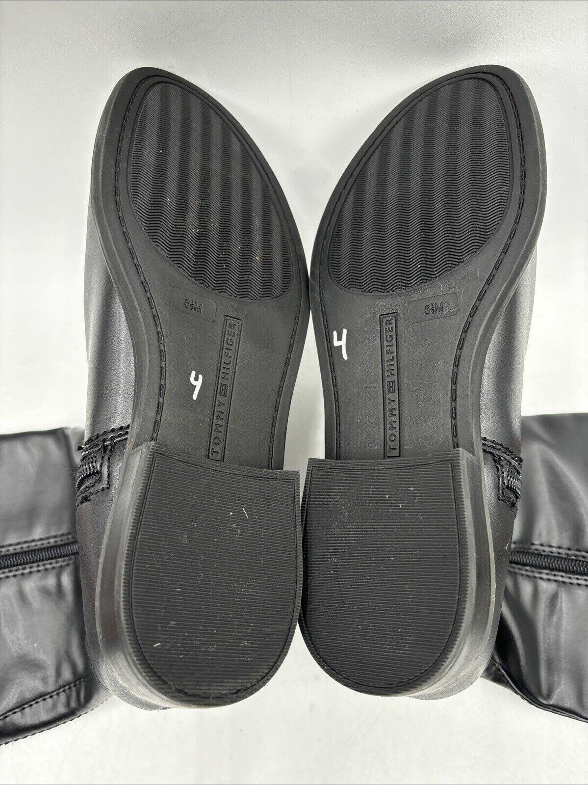 Tommy Hilfiger SHANO Black Faux Leather Almond Toe Side Zip Riding Boots, 6.5M - Very Good