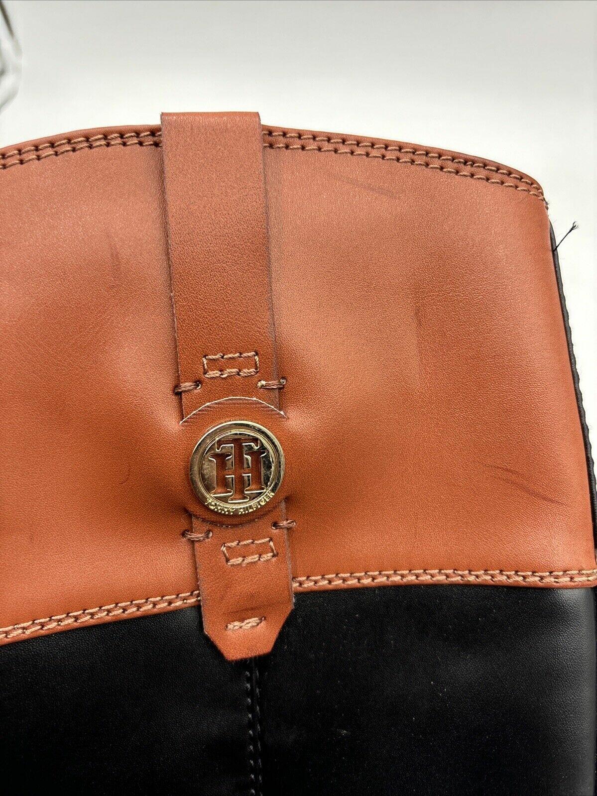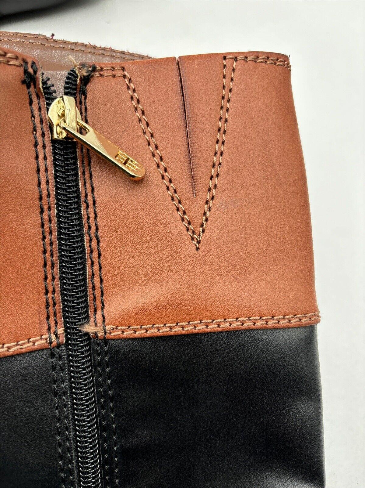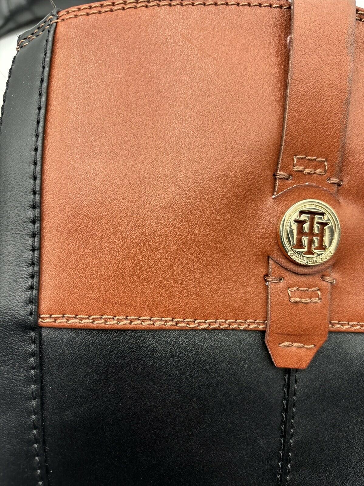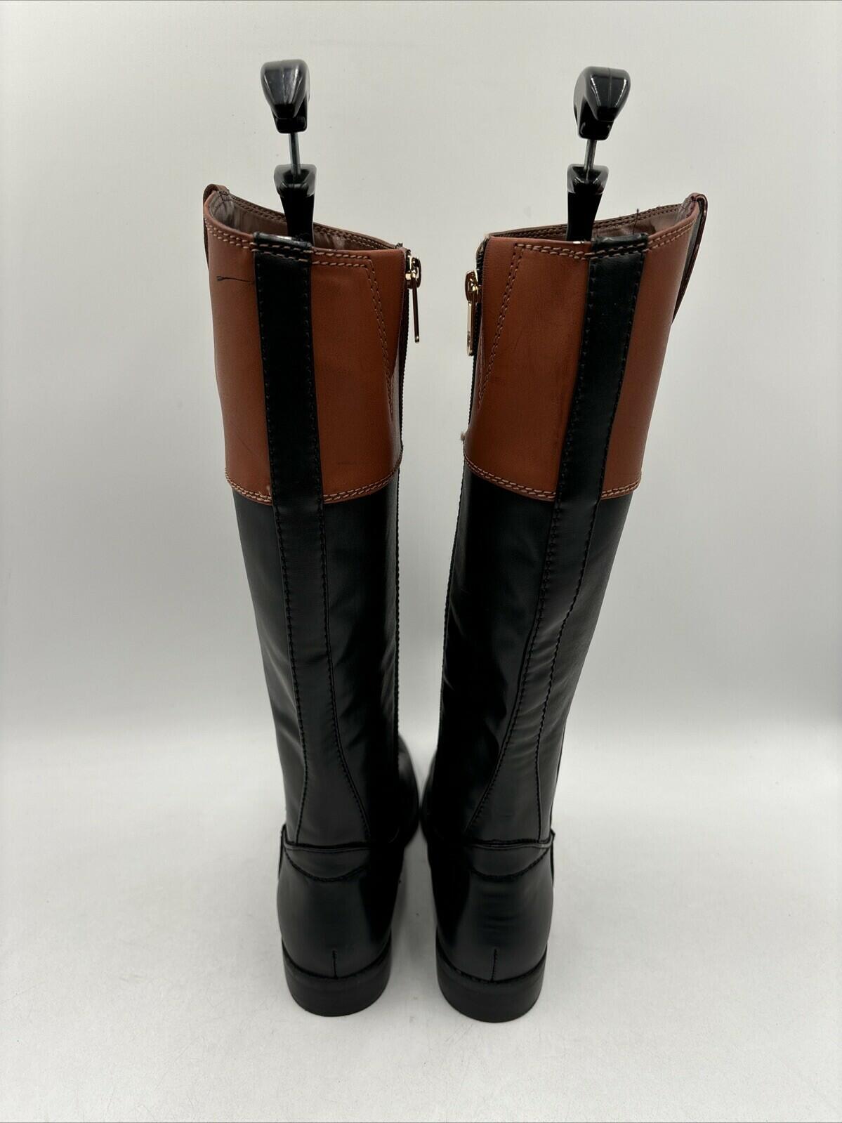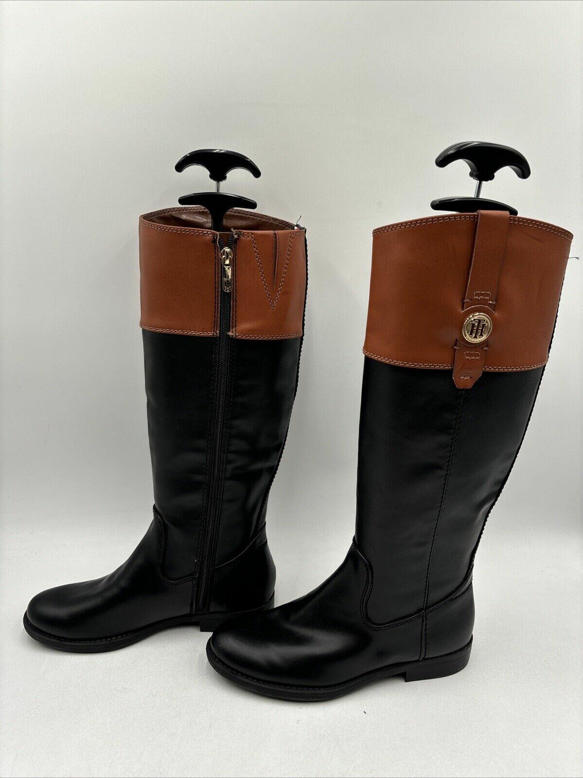 Tommy Hilfiger SHANO Black Faux Leather Almond Toe Side Zip Riding Boots, 6.5M - Very Good