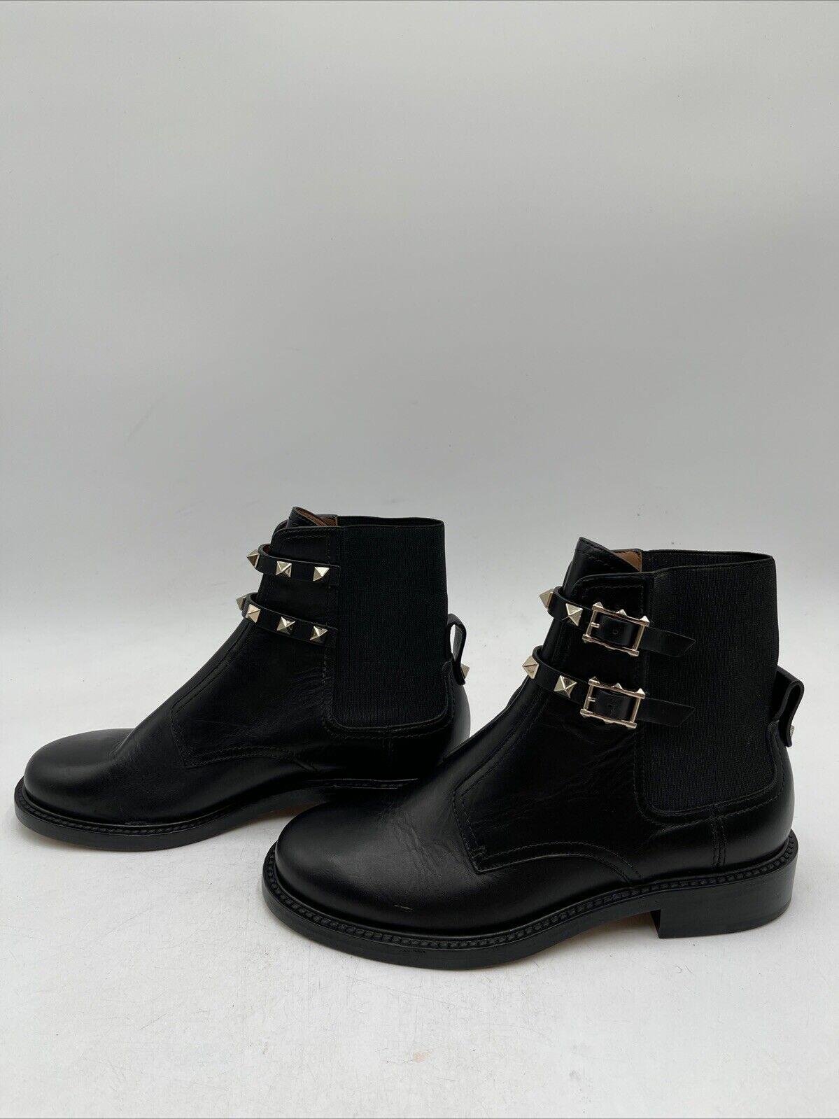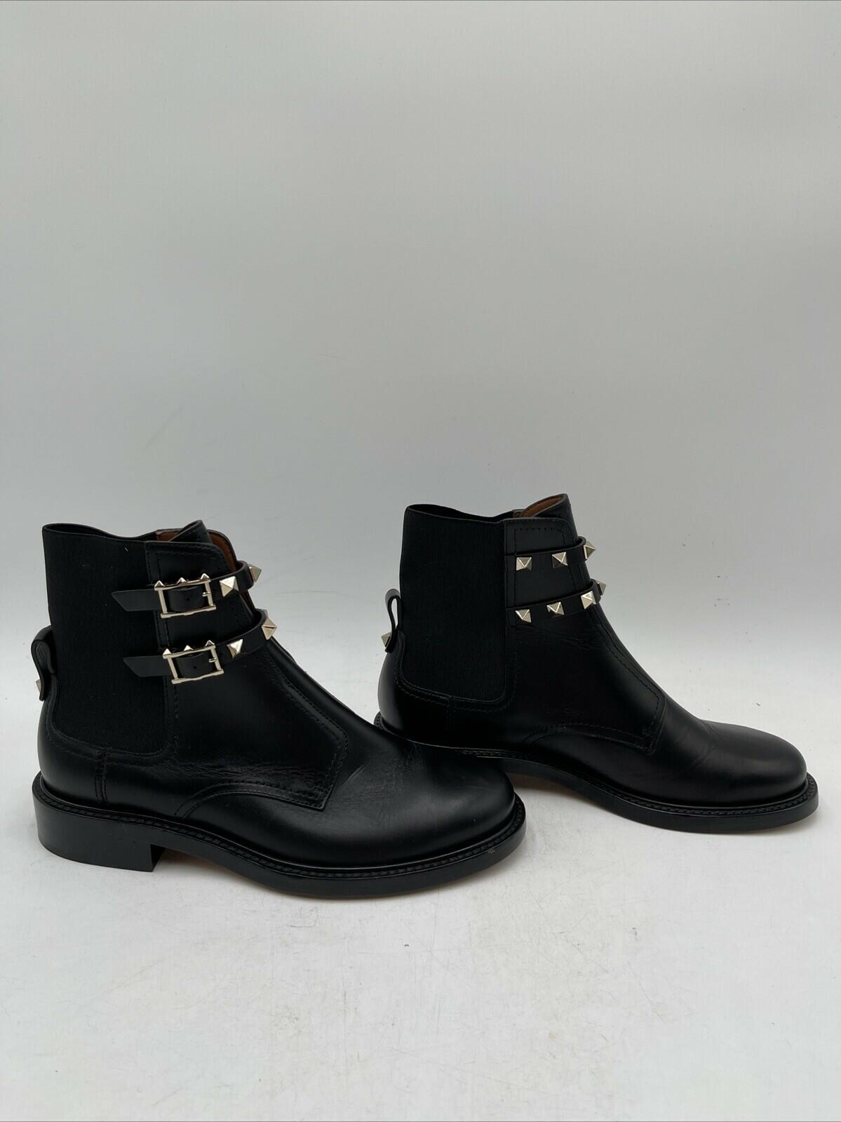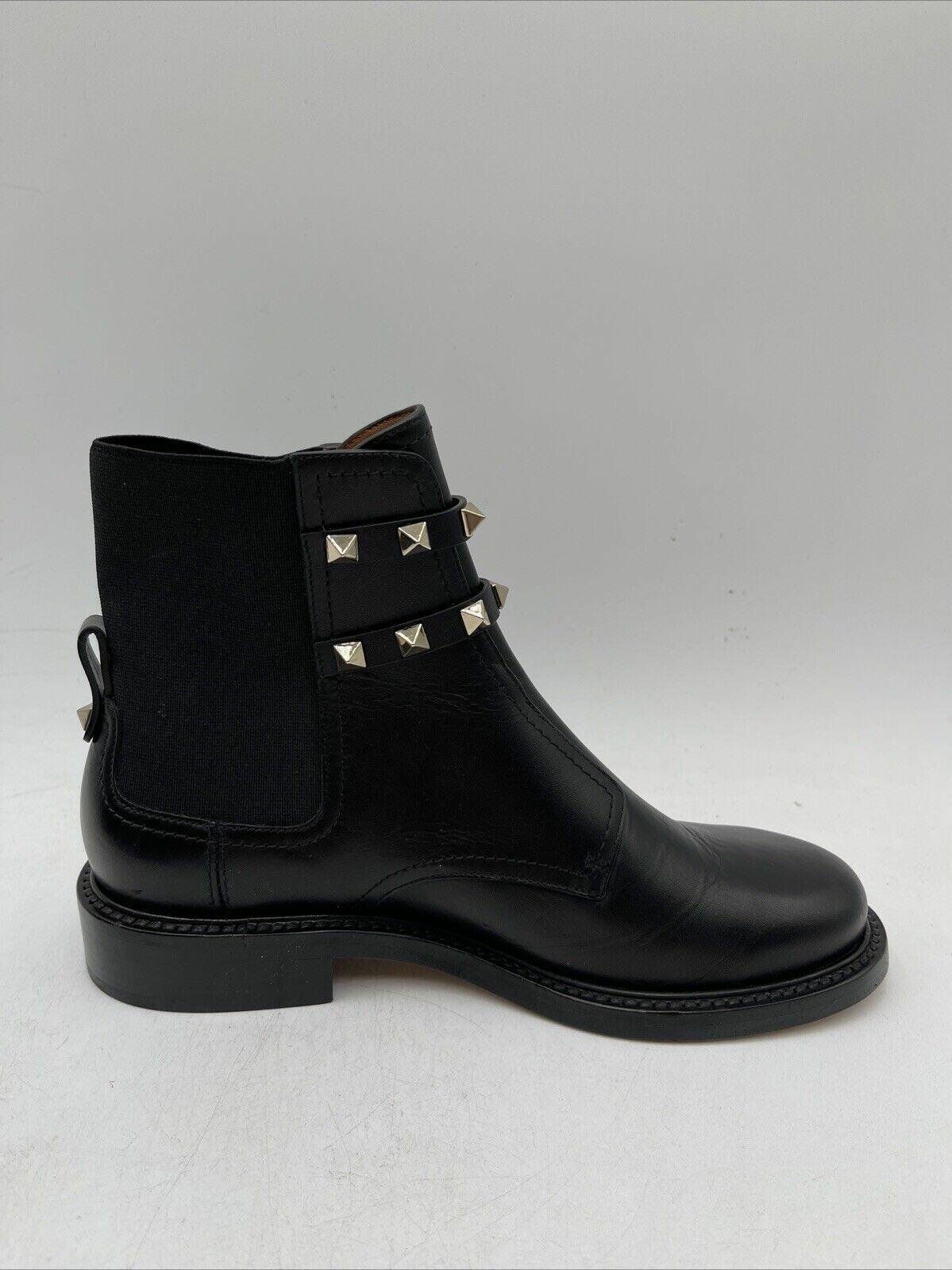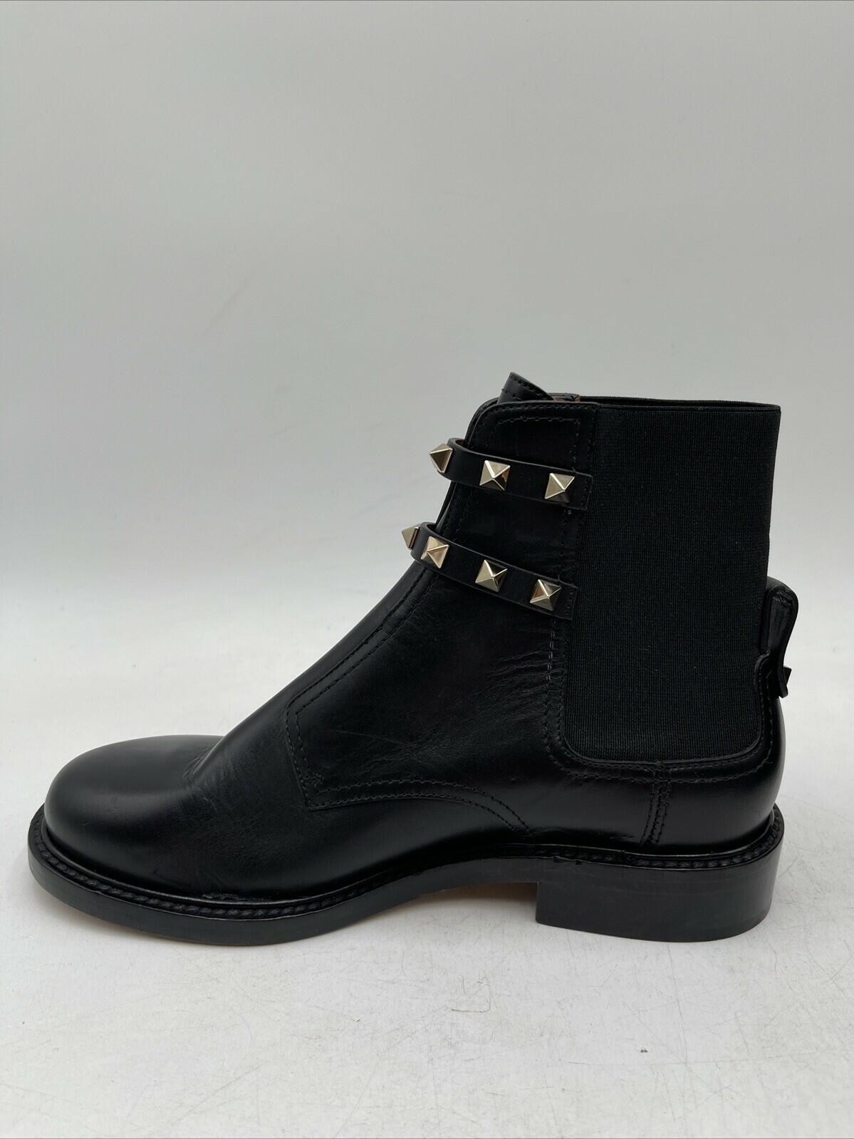 Valentino Garavani Rockstud Black Leather Chelsea Ankle Boots Black Size 35 - Very Good - Ufashion