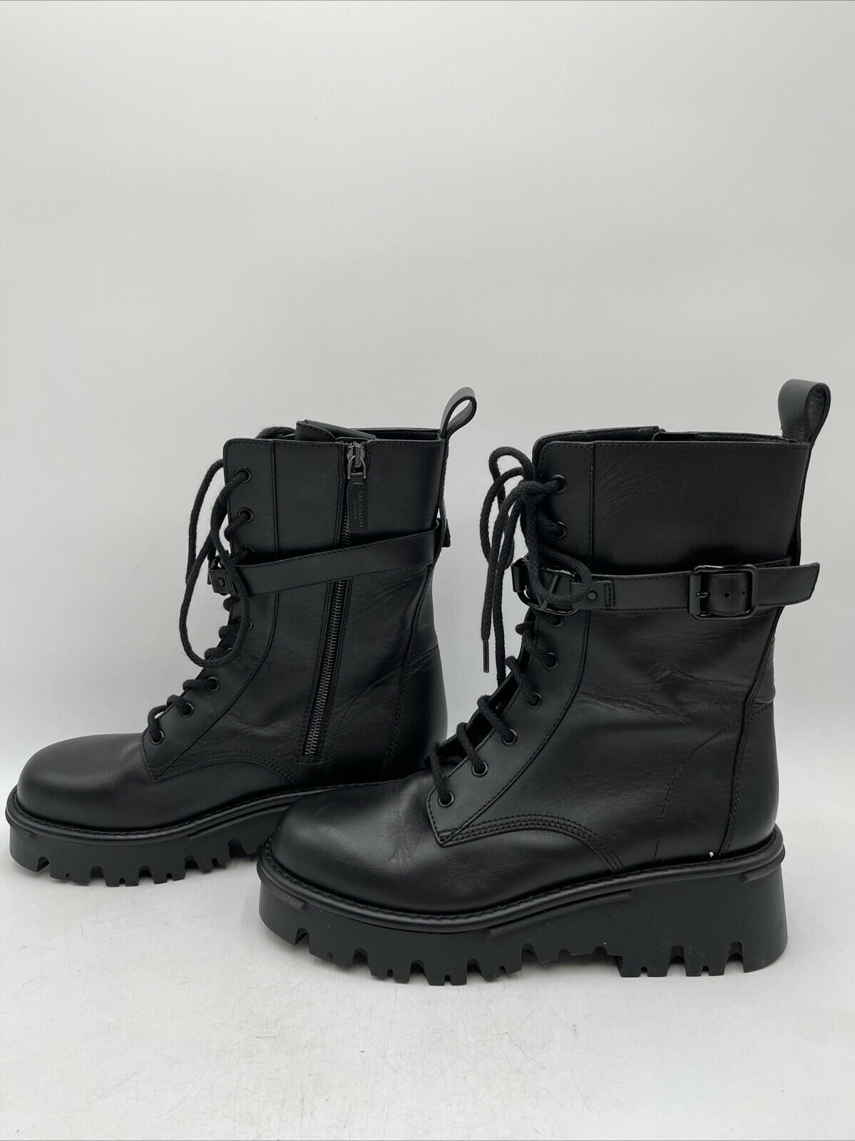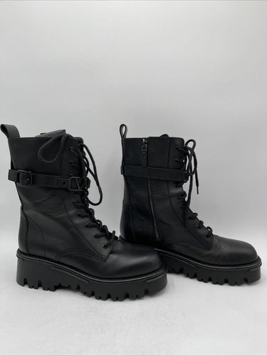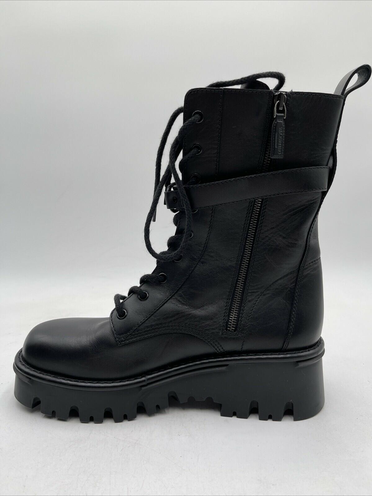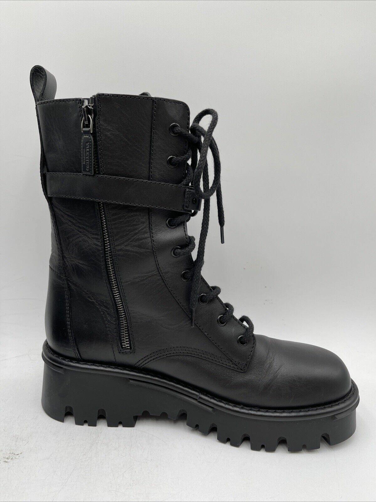 VALENTINO GARAVANI VLOGO Leather Platform Ankle Boots Black Size 41.5 - Very Good