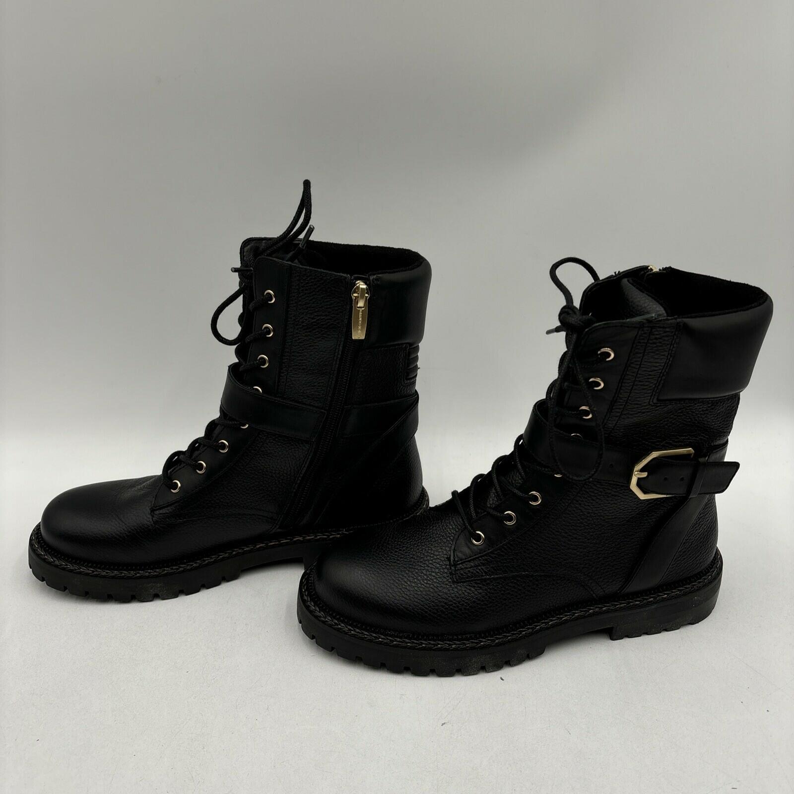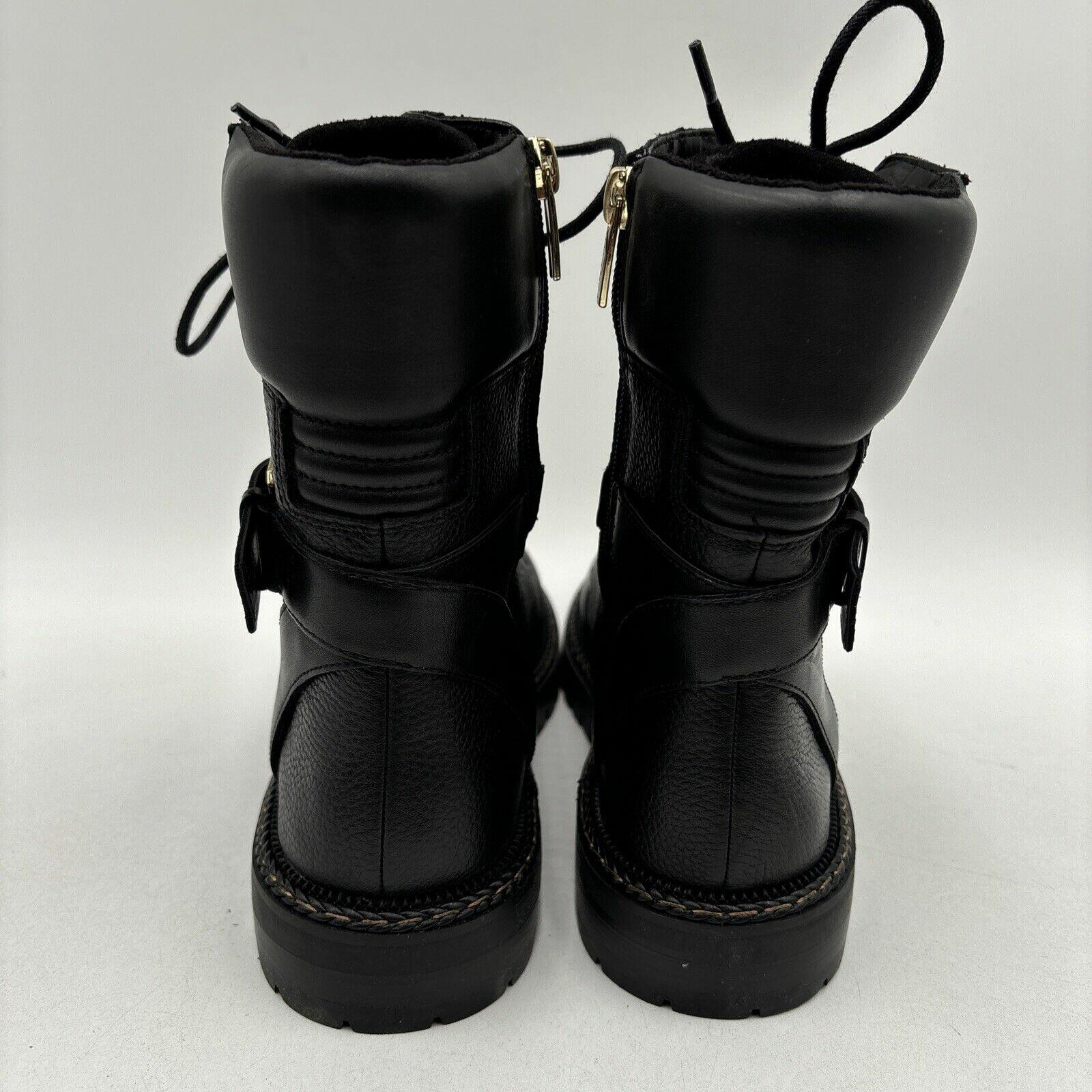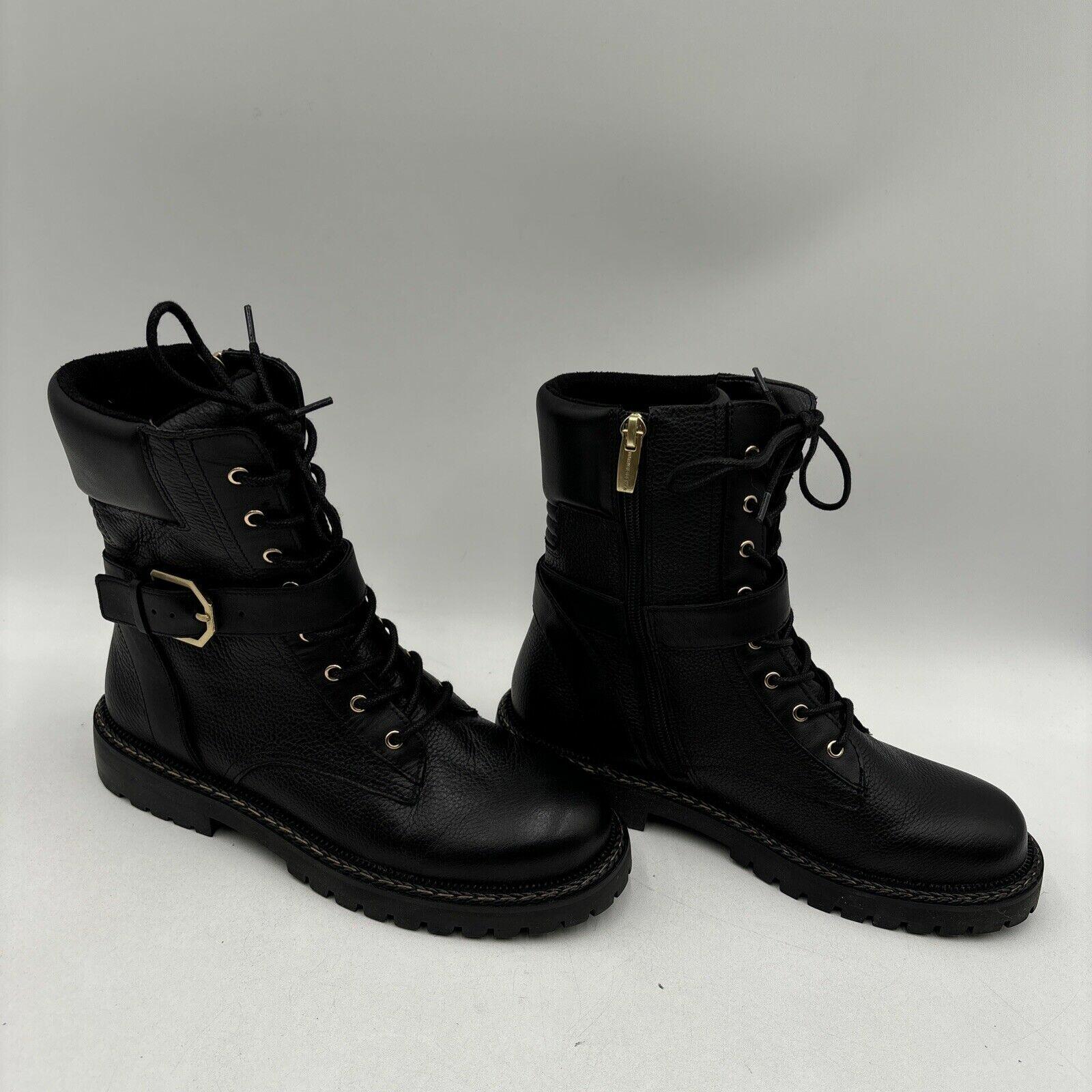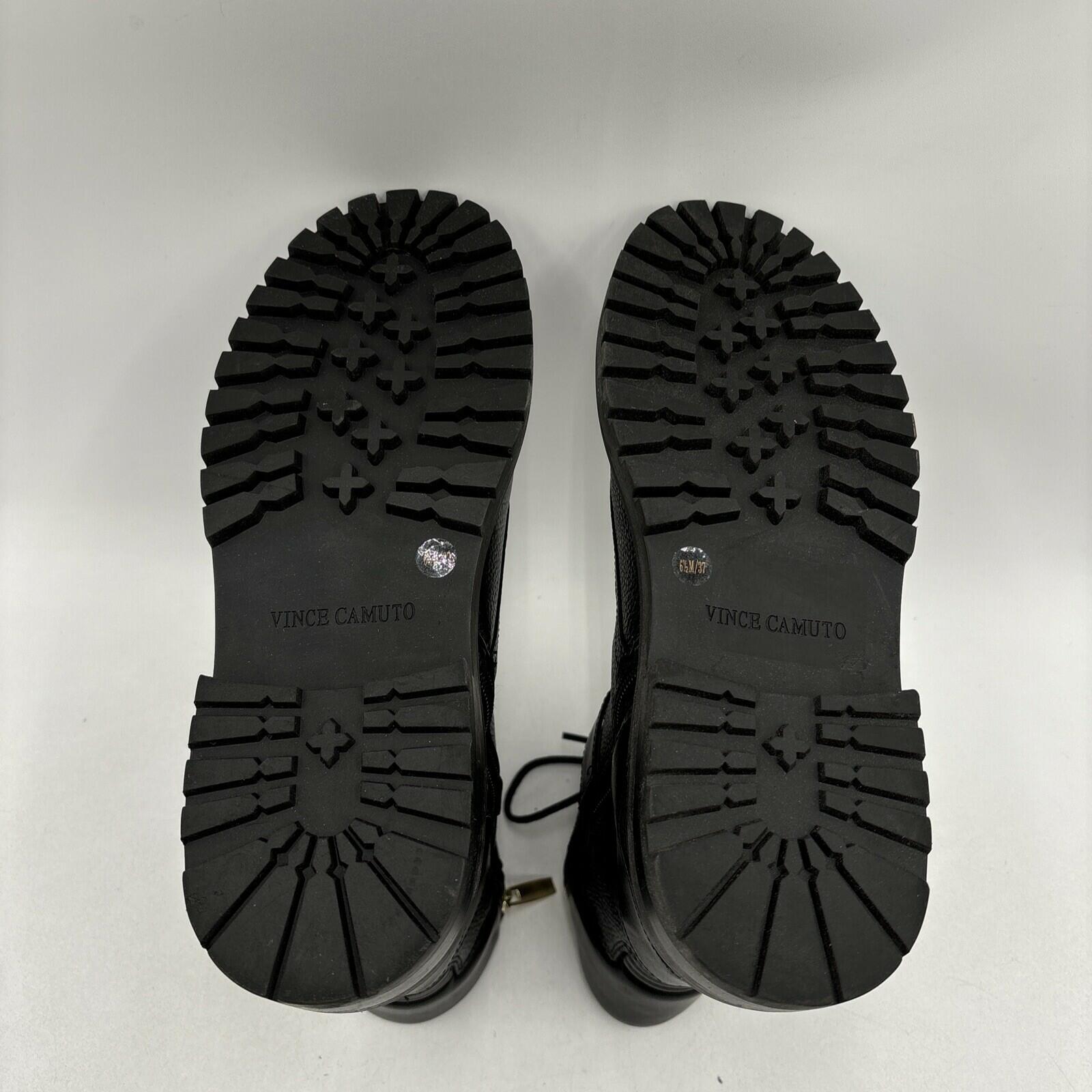 Vince Camuto REPLA Black Leather Round Toe Lace/Zip Up Biker Boots, Size 6.5M - Very Good
