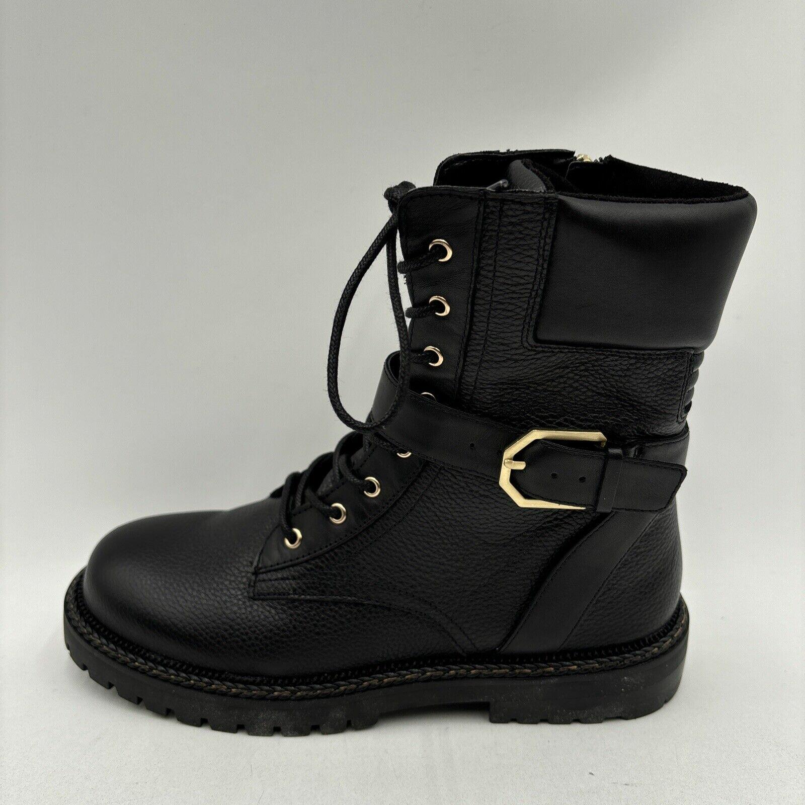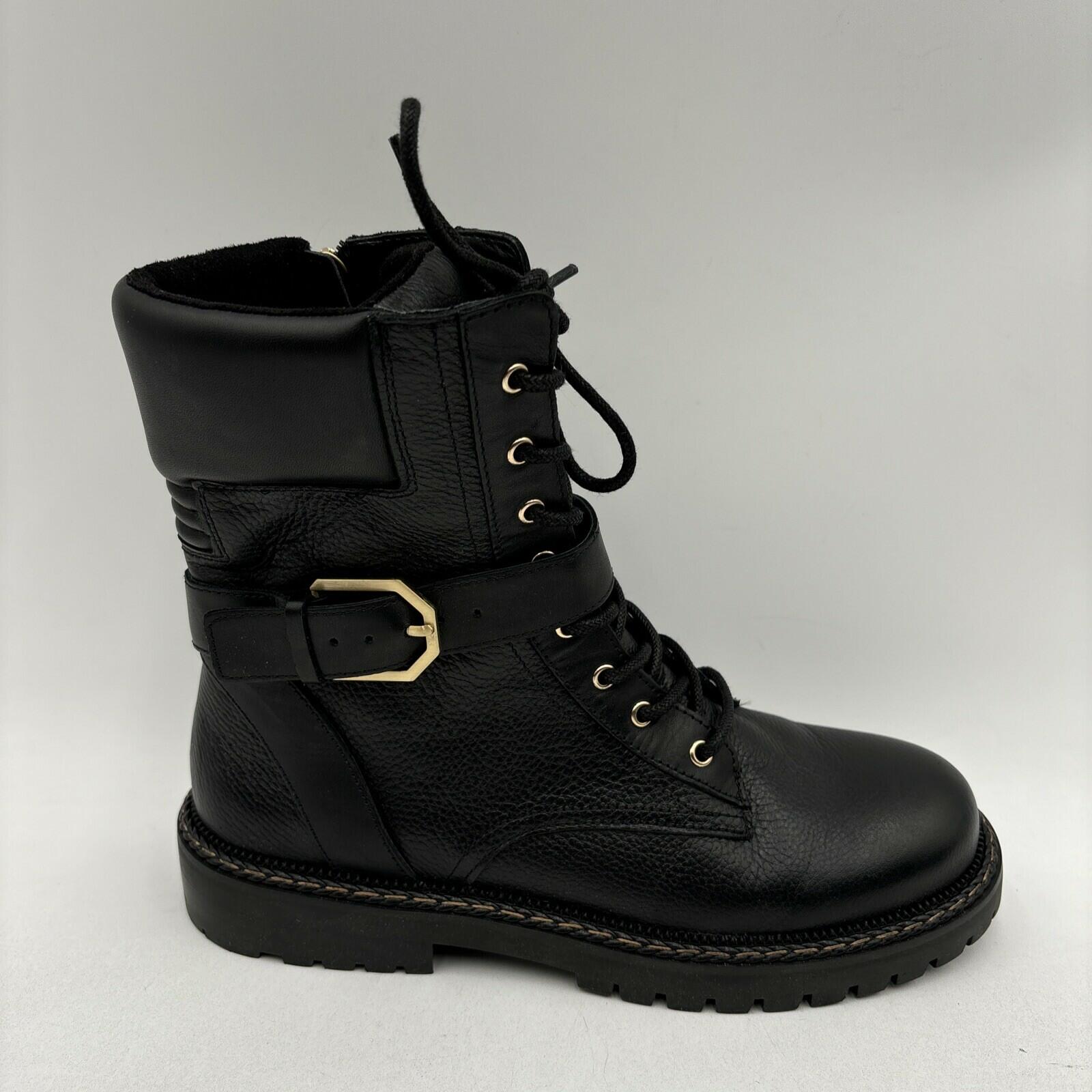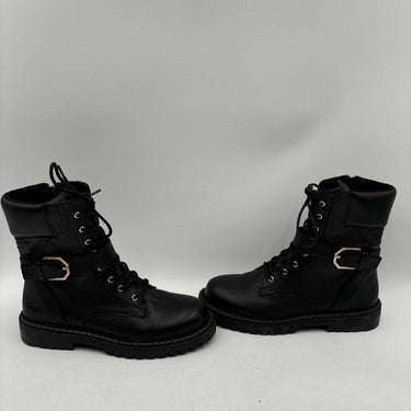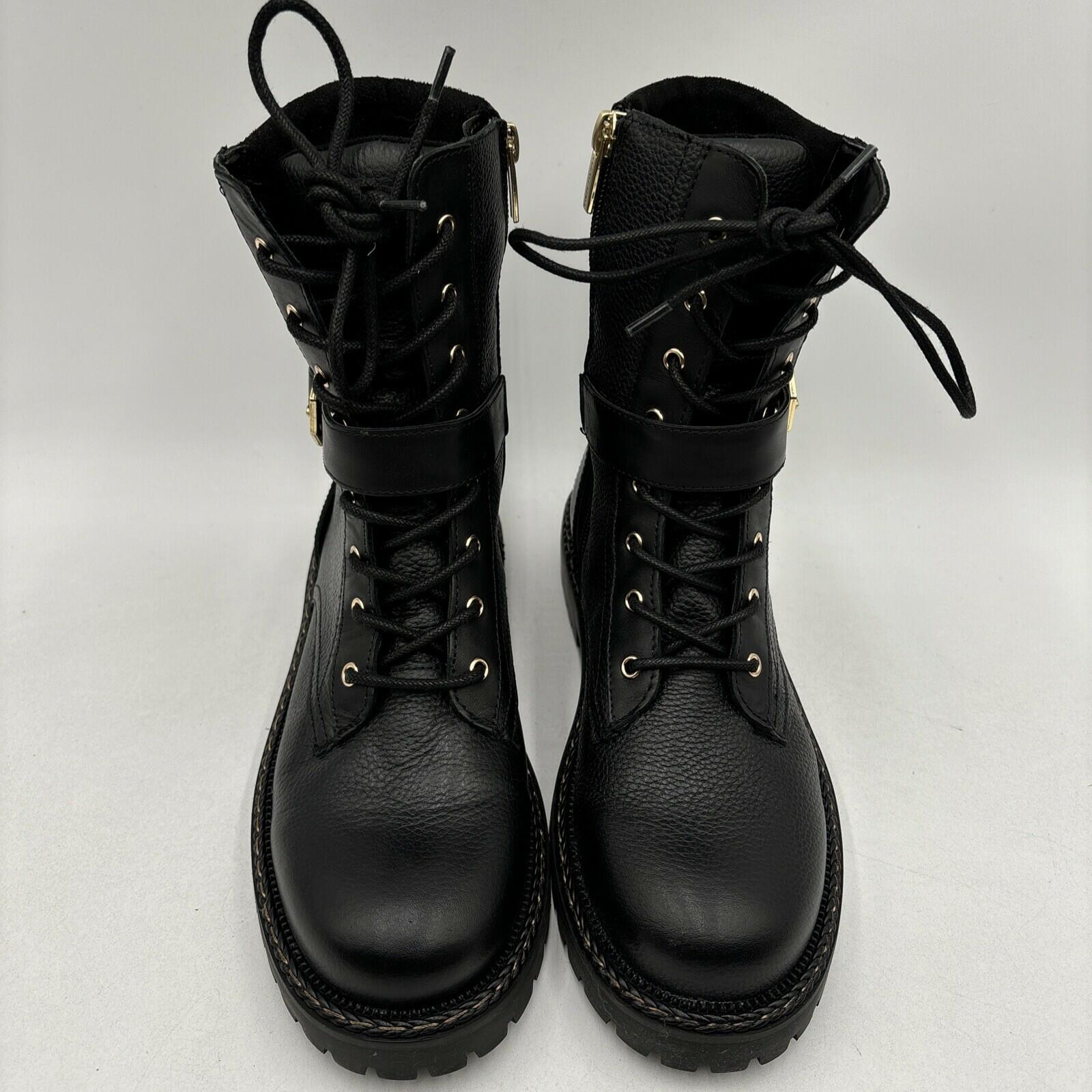 Vince Camuto REPLA Black Leather Round Toe Lace/Zip Up Biker Boots, Size 6.5M - Very Good