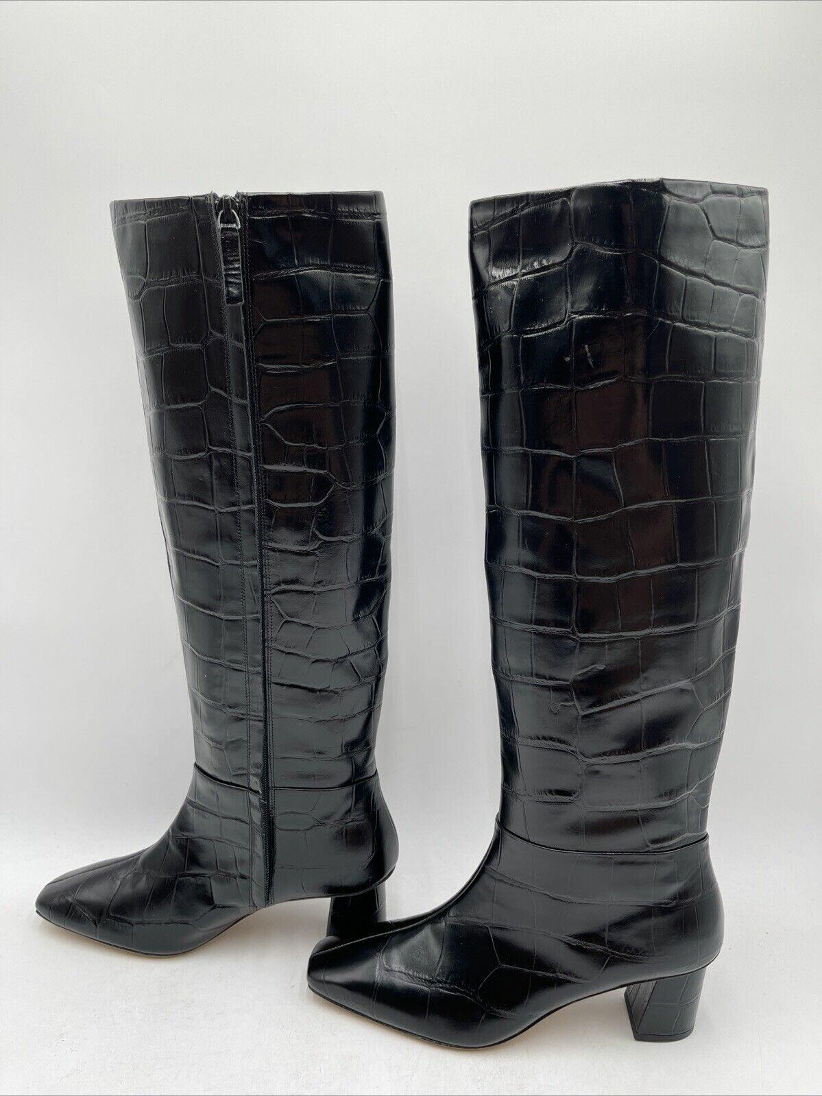Women’s 3.1 PHILLIP Vero Cuoio Boots Croc-Embossed Leather Boots Black Size 38 - Very Good