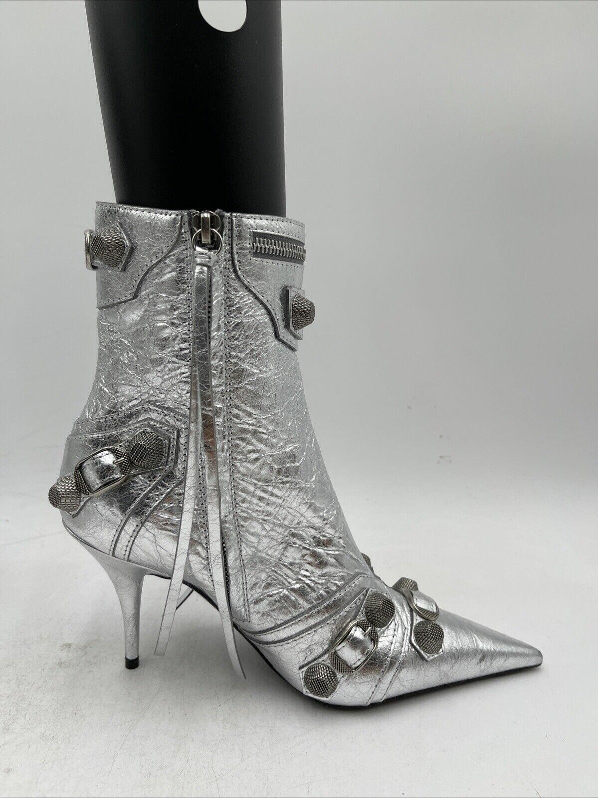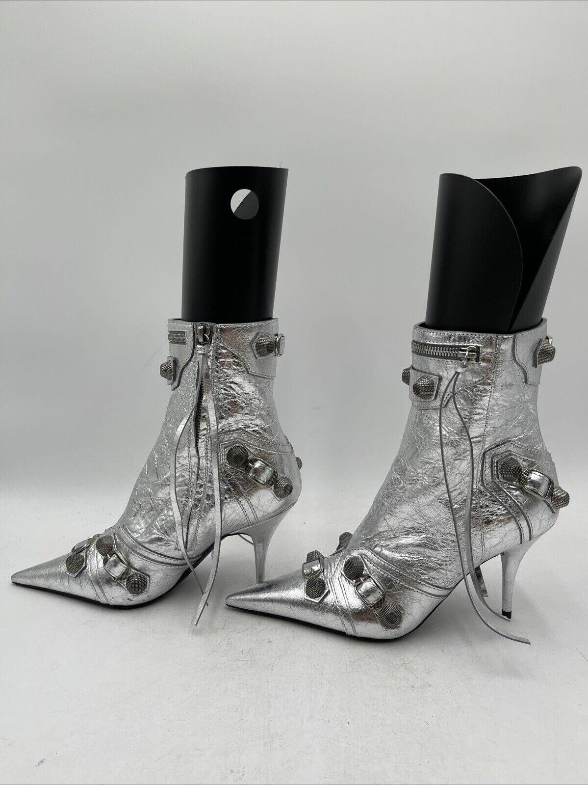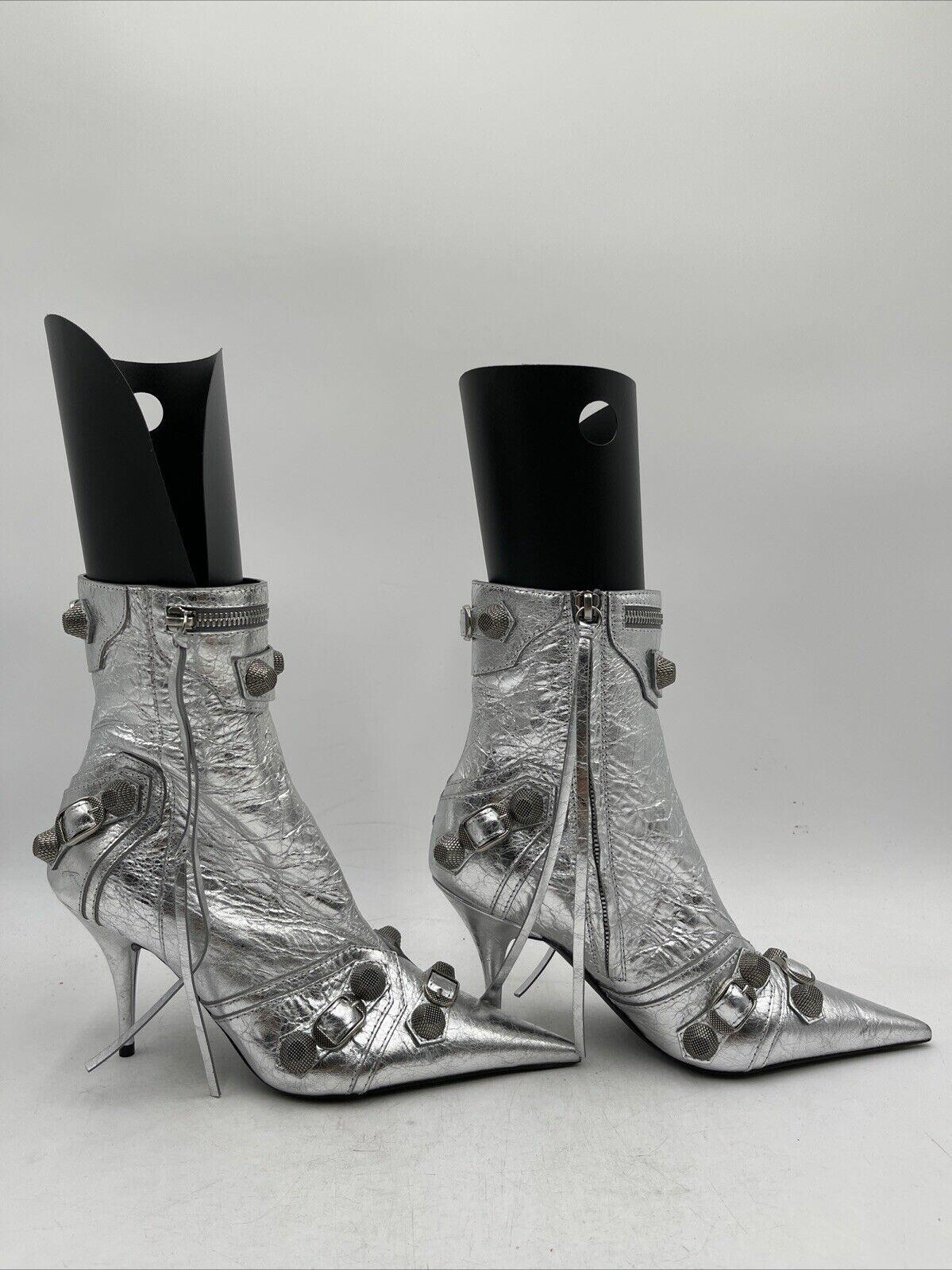 Women’s Balenciaga Cagole Leather Ankle Boots Silver Size 37.5 - Very Good