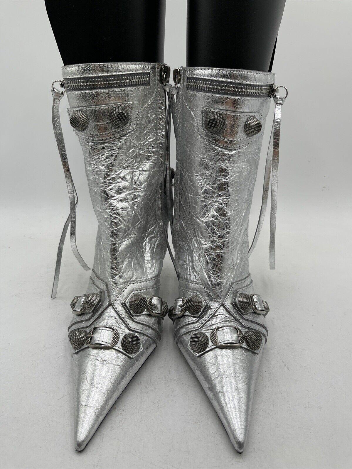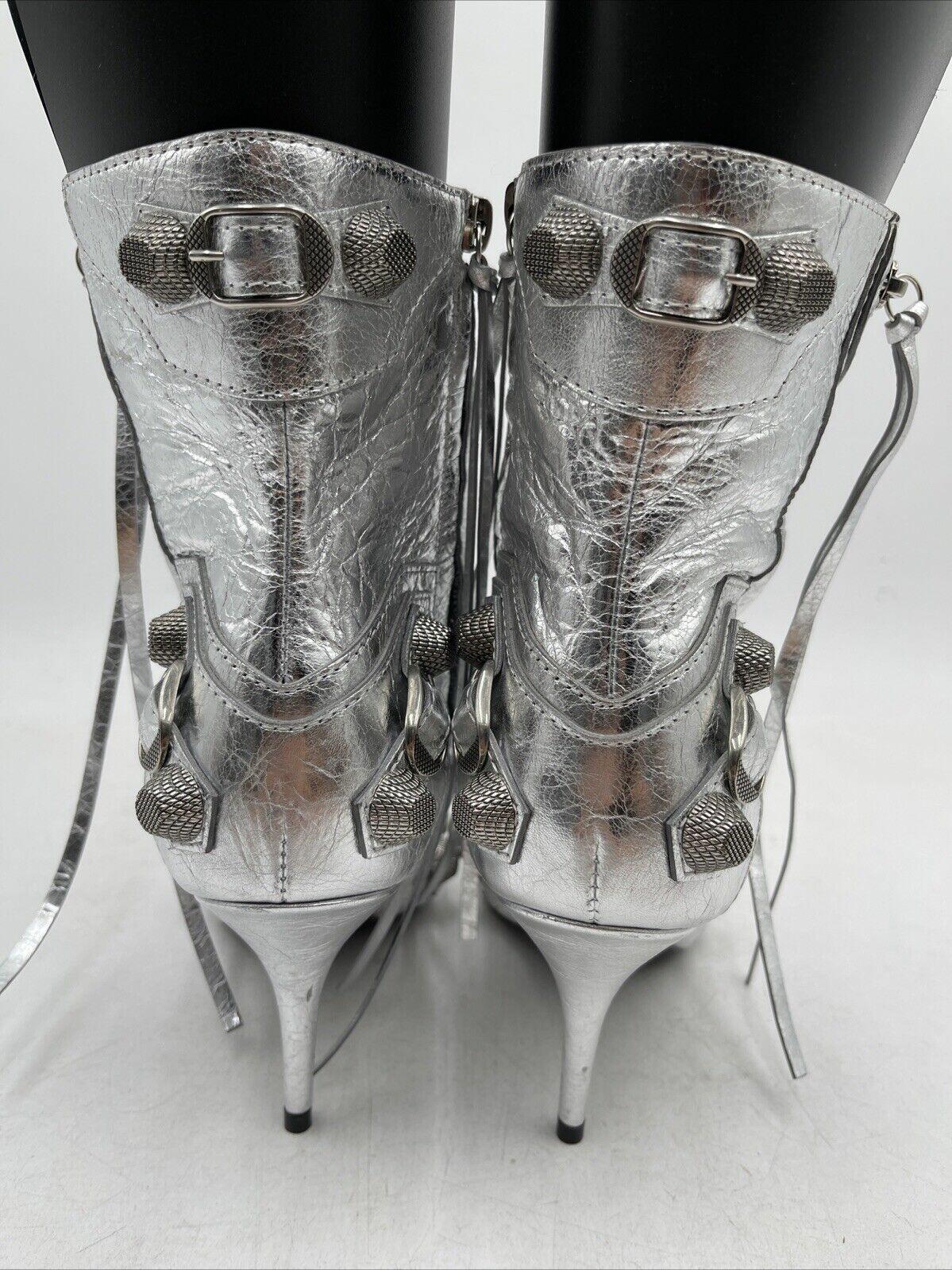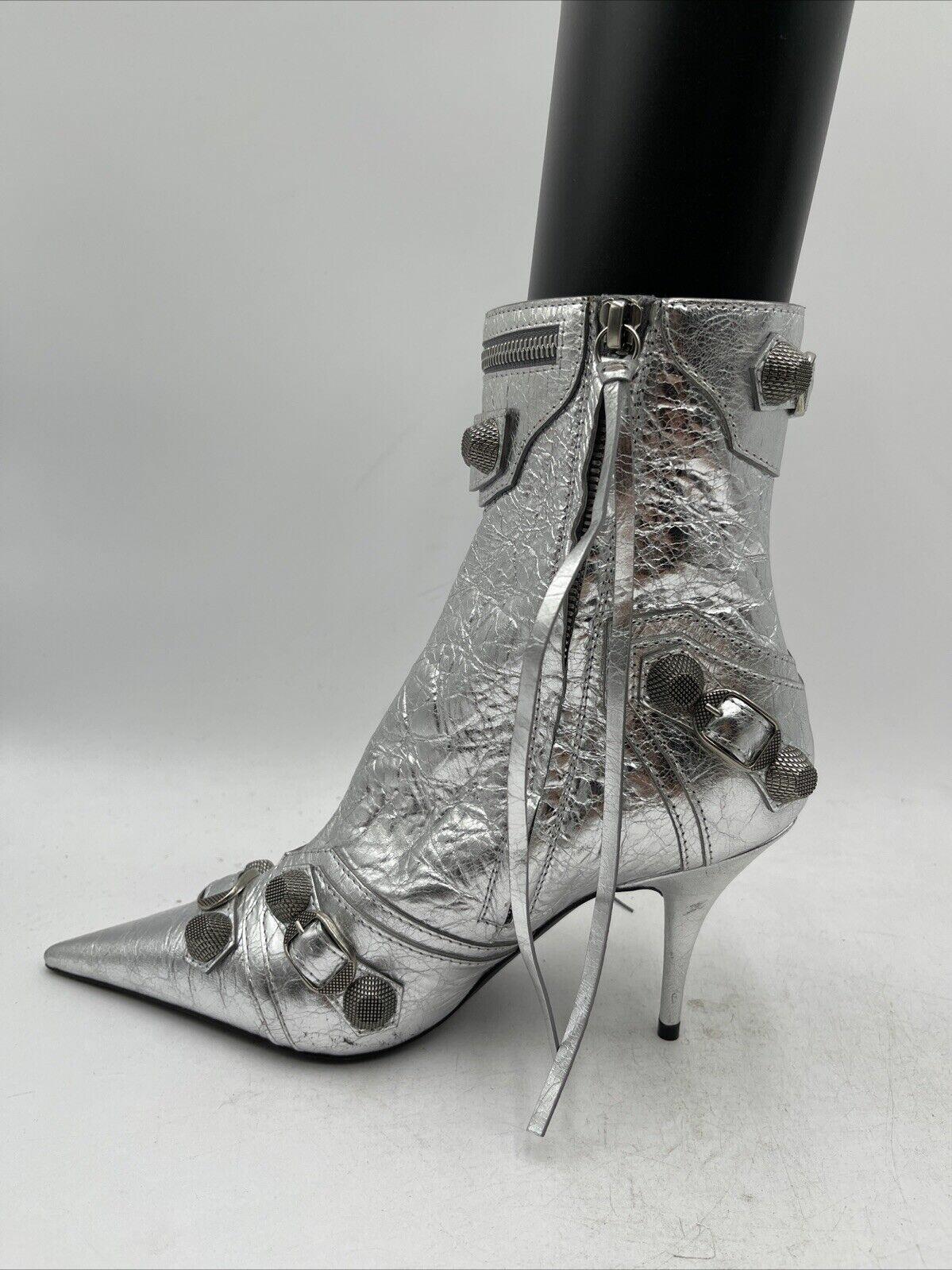 Women’s Balenciaga Cagole Leather Ankle Boots Silver Size 37.5 - Very Good