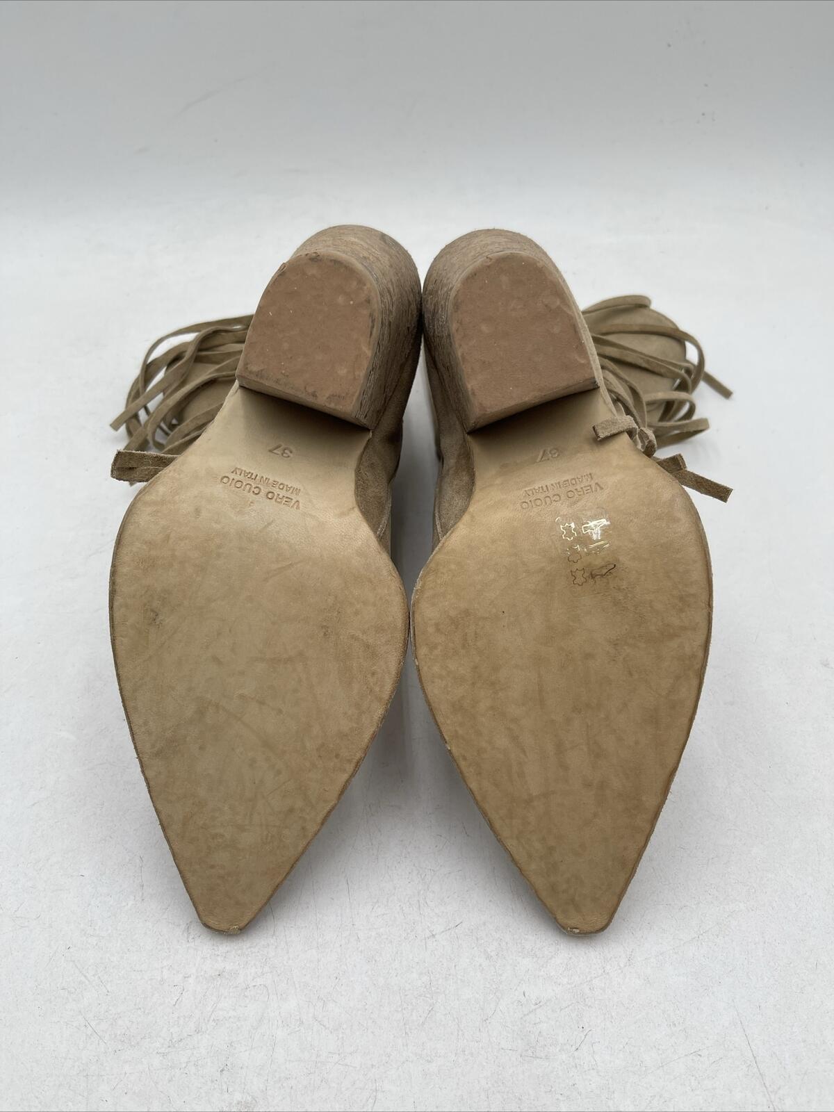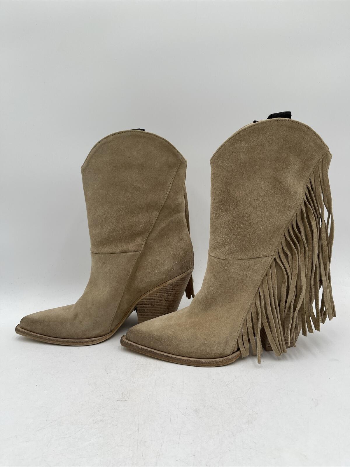 -Bottoms are barely wornElevate your footwear game with these stylish Vince Camuto Faymina Bootie Evena in Tan. These ankle boots are perfect for any occasion and are designed for women with a US shoe size of 7. The upper material is made of high-quality suede, which adds a touch of elegance to the overall design.