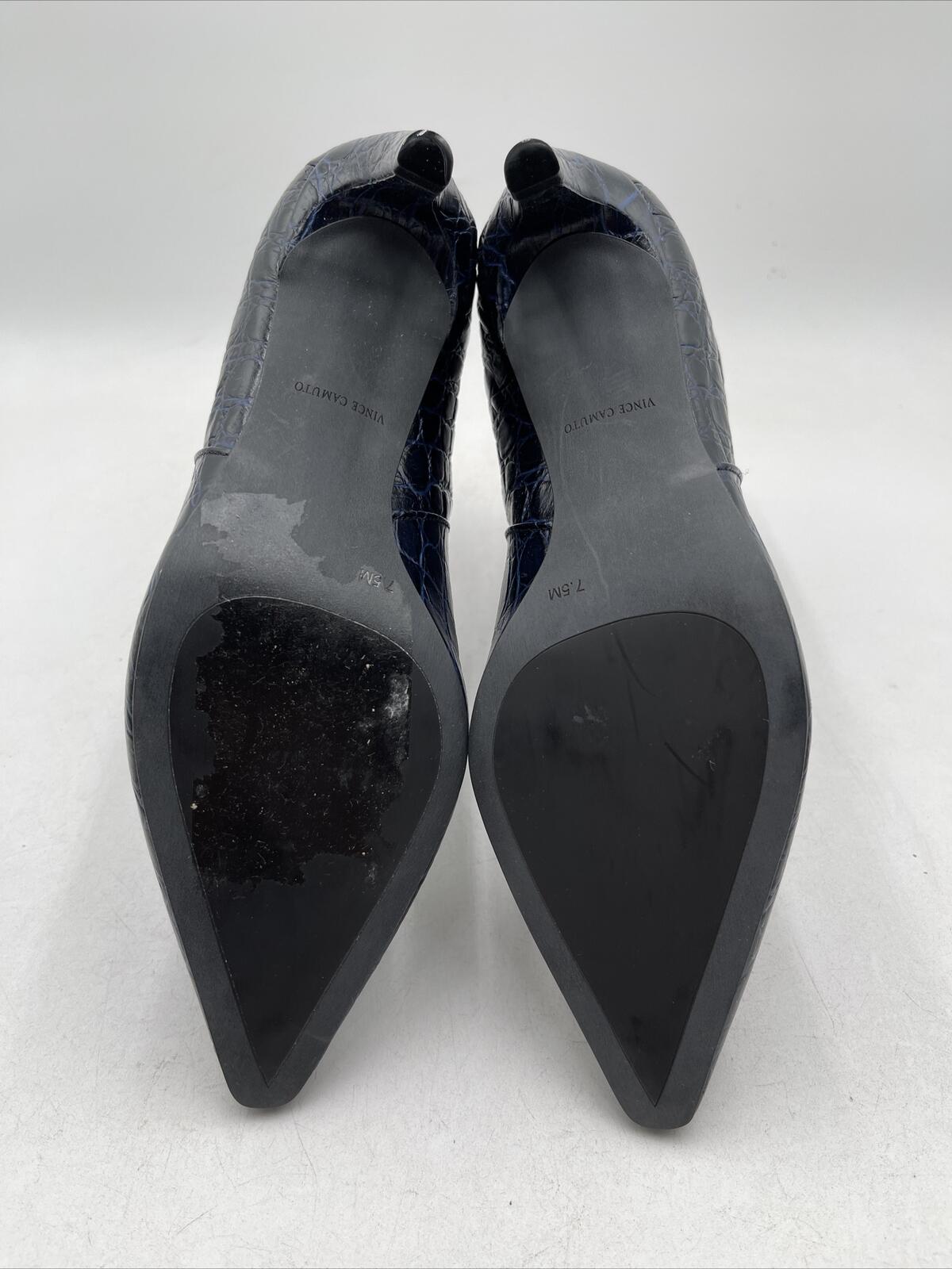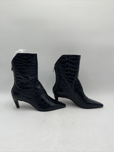 -Bottoms are lightly wornElevate your style with these stunning Vince Camuto Quindele booties in Midnight color. These ankle boots feature a pointed toe and a kitten heel style, providing the perfect balance of sophistication and comfort. The leather upper material exudes elegance, making them ideal for any casual occasion.