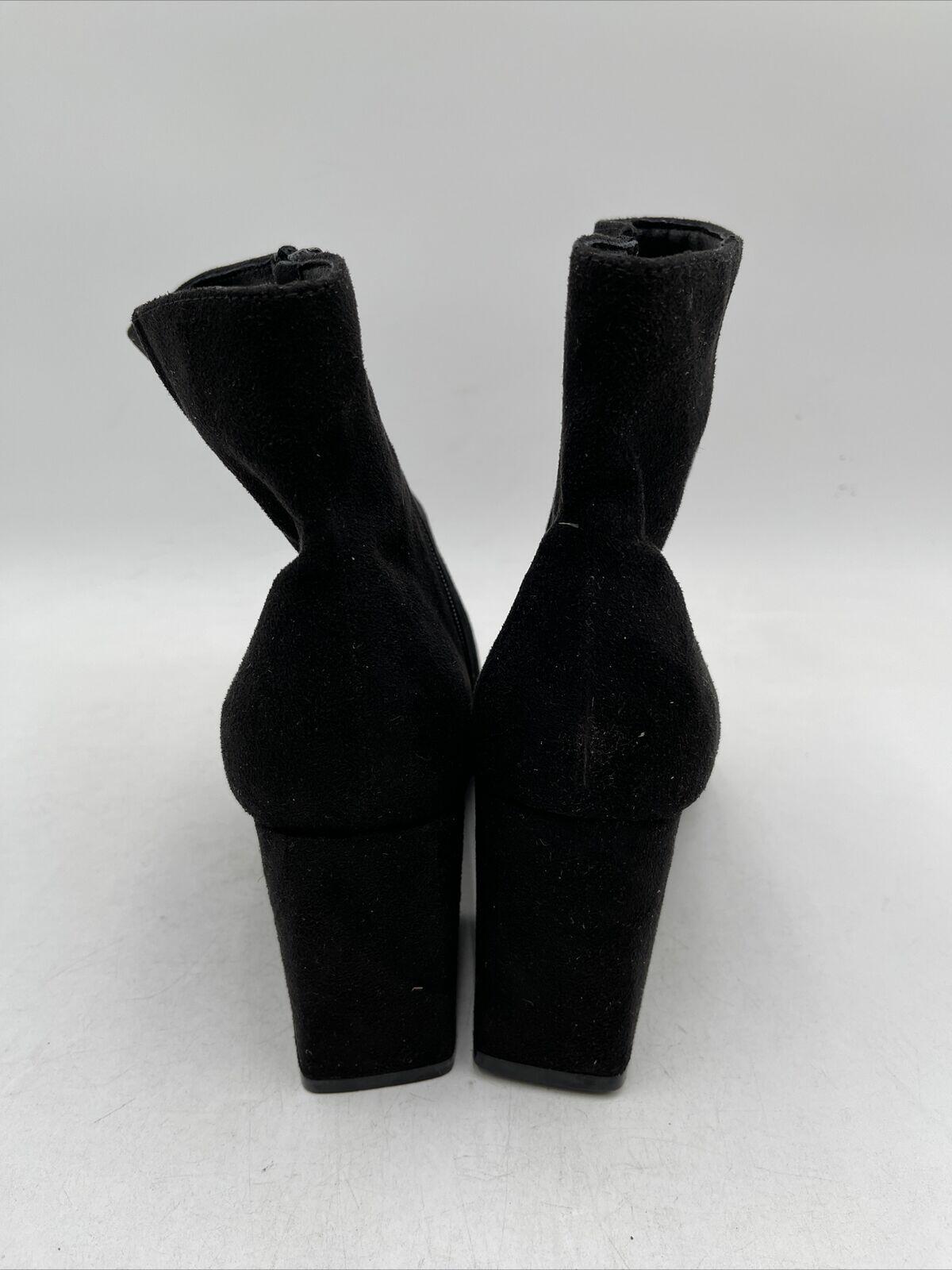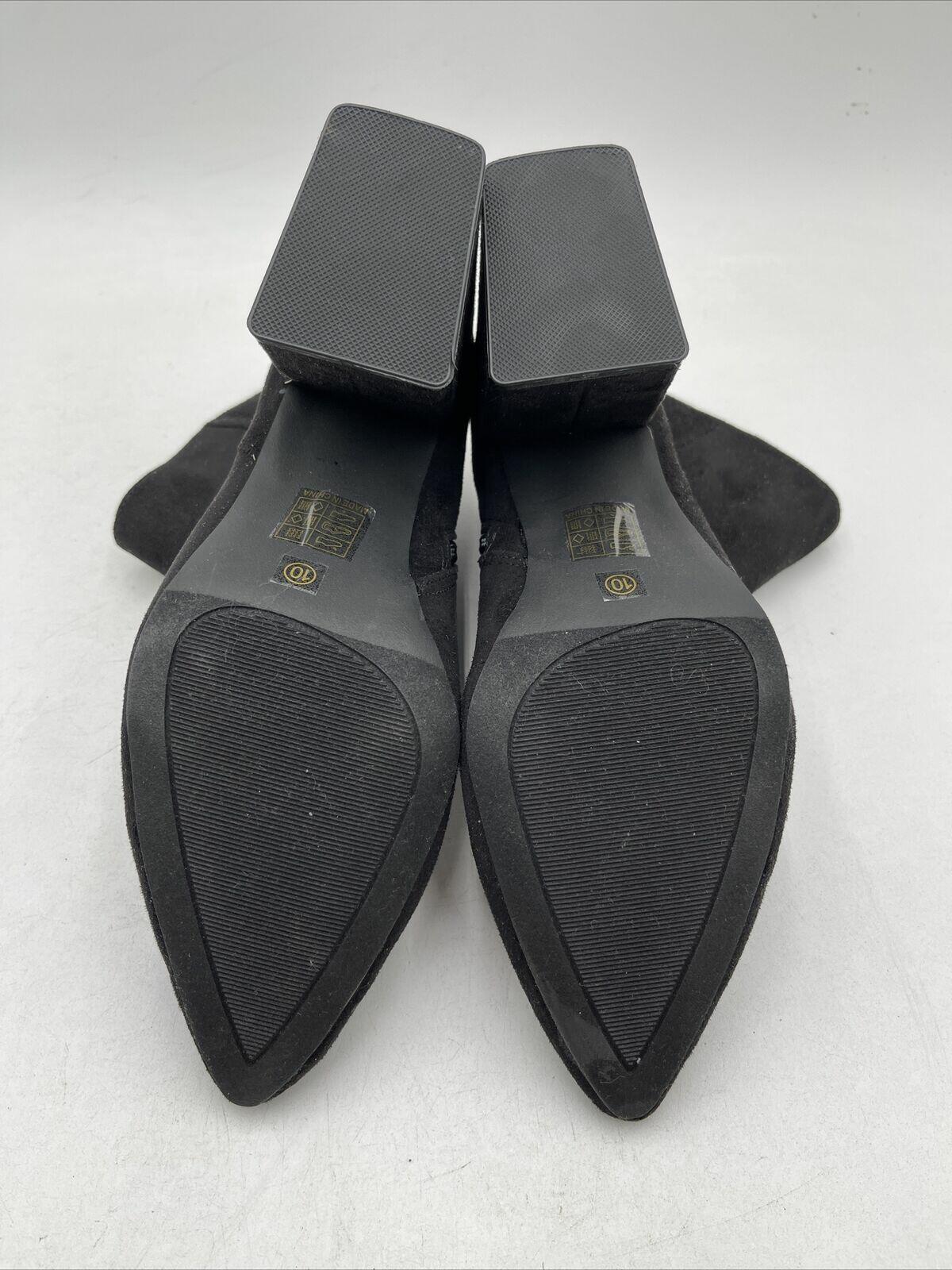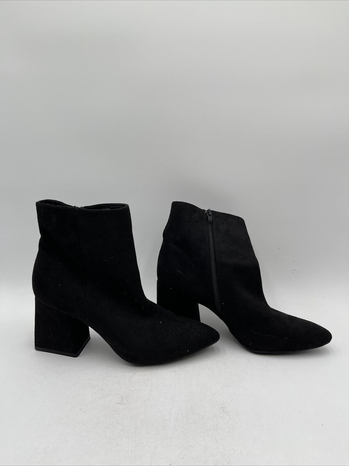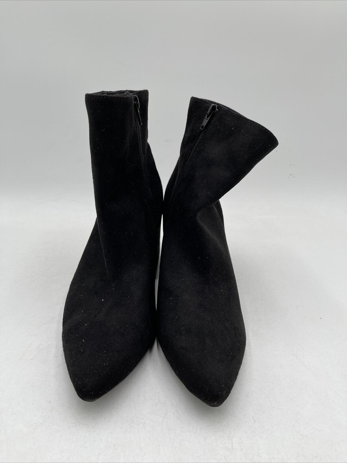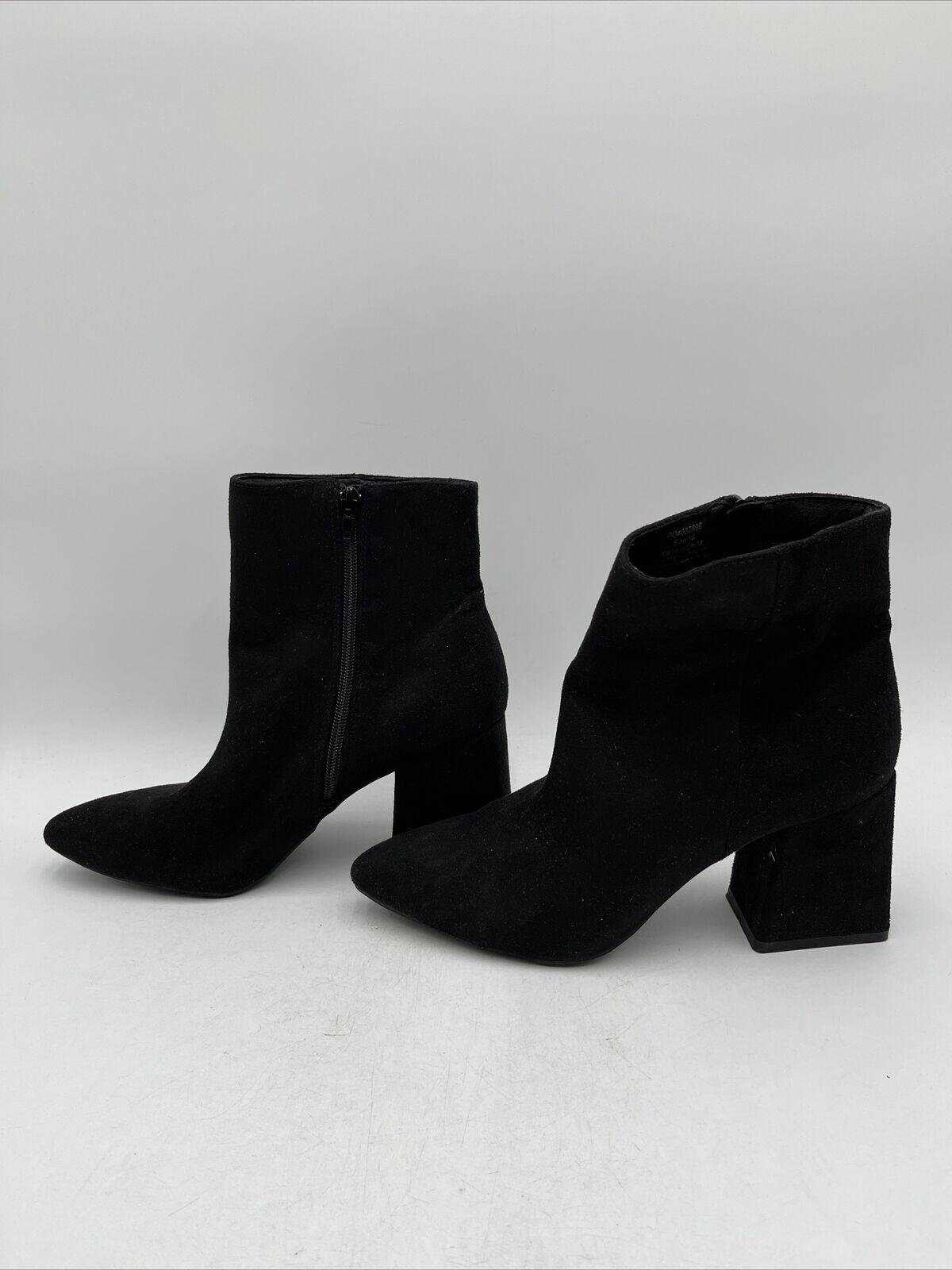 -Creased upperElevate your style with these chic Journee Collection Sorren booties. The pointed toe and ankle style make them perfect for both casual and business occasions. With a mid-height block heel, these suede boots are both comfortable and fashionable. Available in black and in size 10, these booties are a must-have.