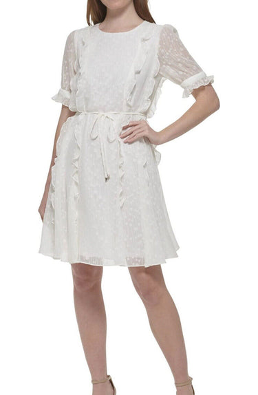NWOT Tommy Hilfiger Women Short Sleeve Knee-Length Flare Chiffon, Ivory Size 4