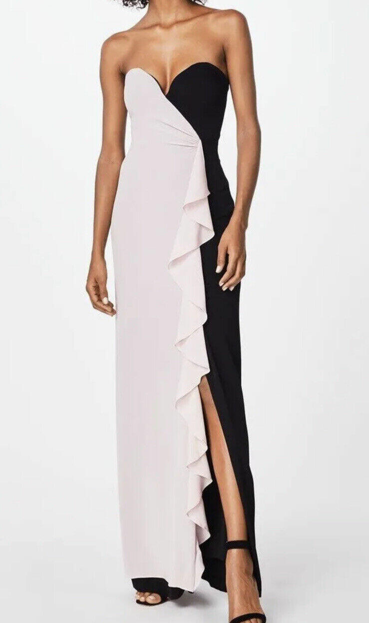 NWT Nicole Miller Artelier Womens PEACH/BLACK Strapless Ruffle Gown, Size 4 - Ufashion