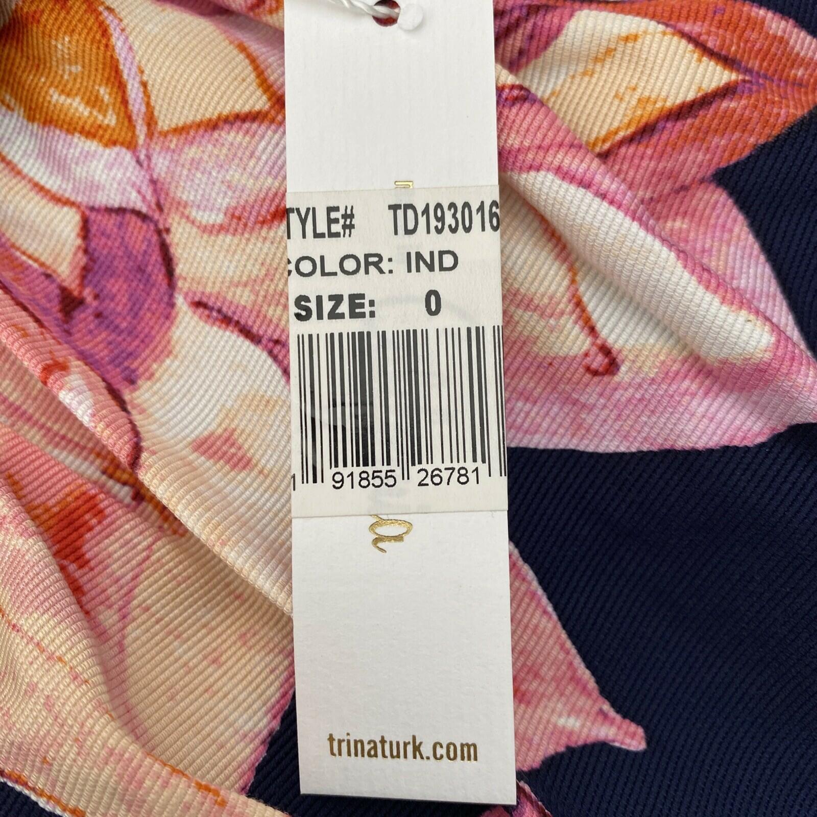 NWT Trina Turk Coast Floral-Print Short-Sleeve Ruffle-Hem Dress Navy Size 0. Condition is new with tags. Shipped with USPS First Class.