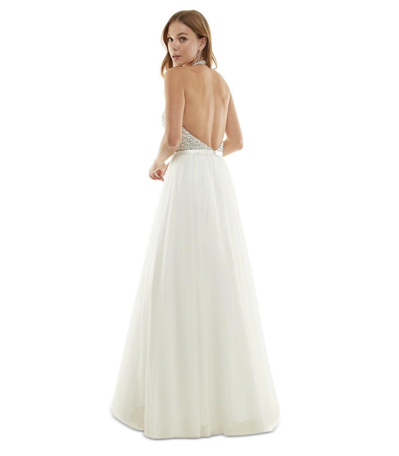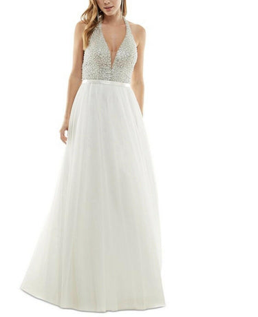 Say Yes to the Prom Bead-Embellished Gown Junior's 3 Ivory Back Zipper Size 3