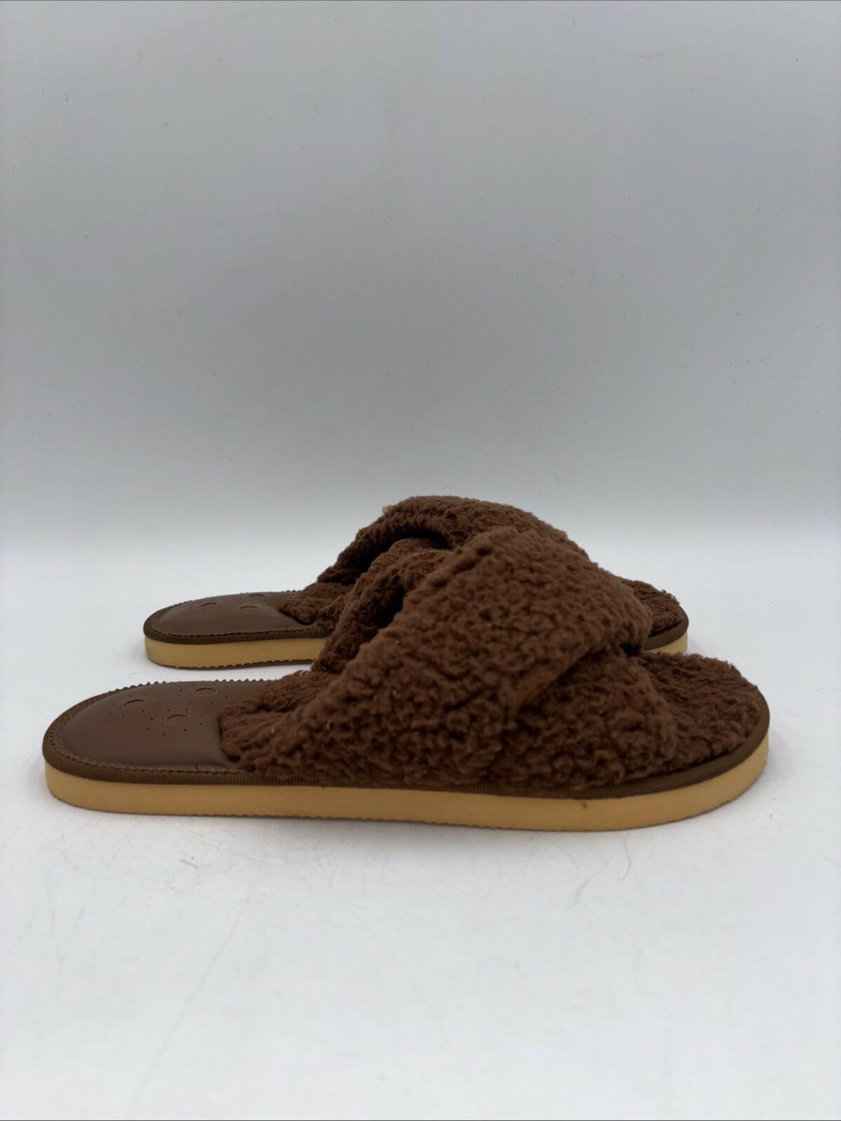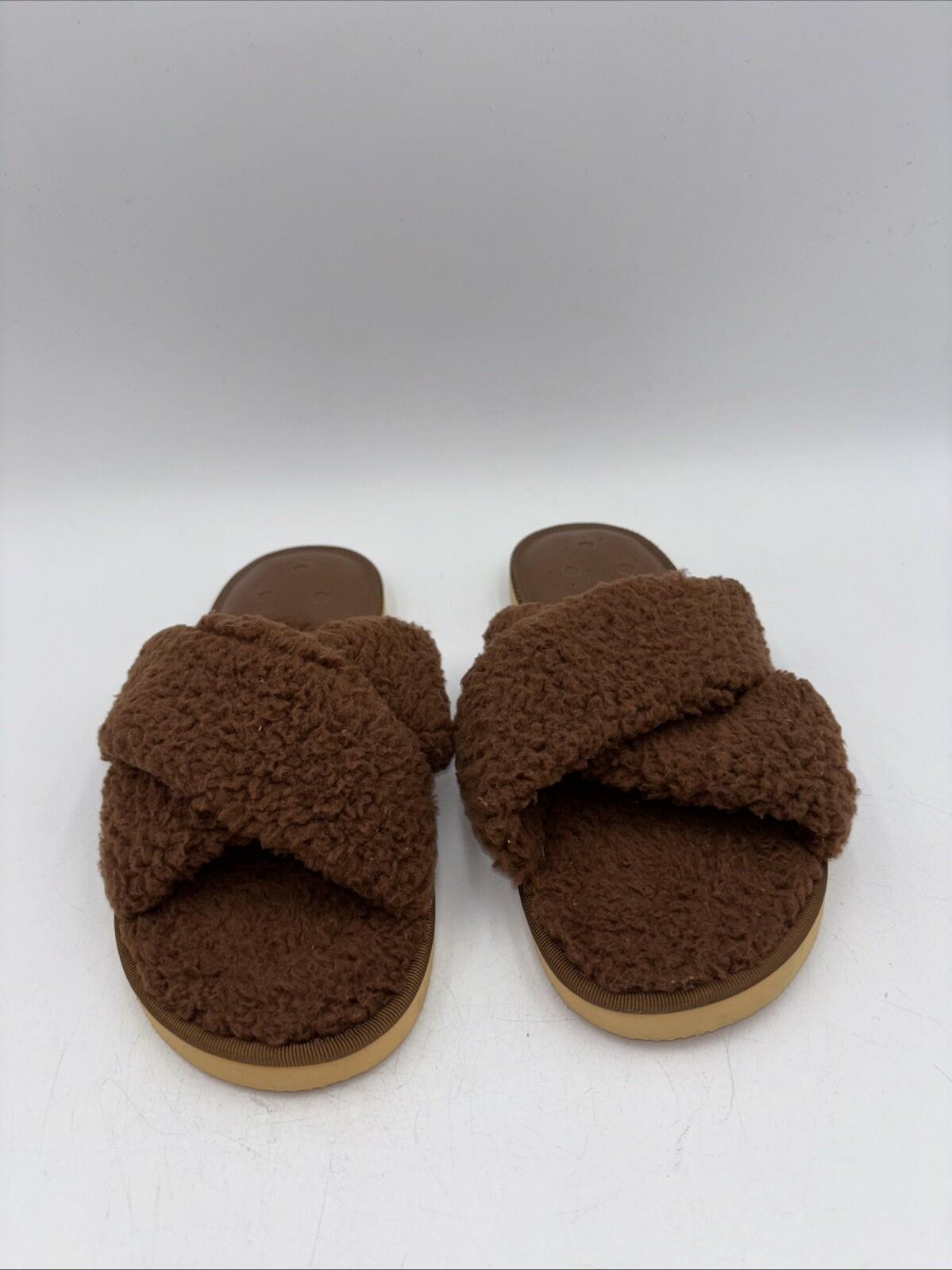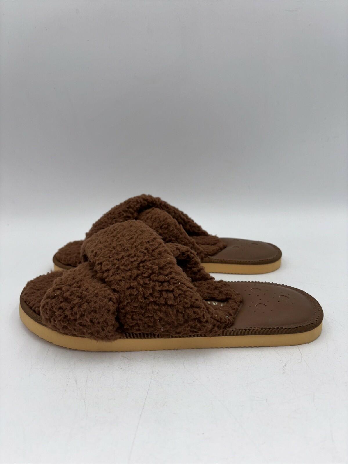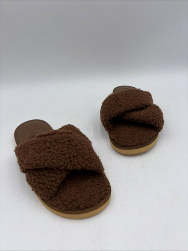Jack Rogers Cozy Sloane Slippers Teddy Bear Brown Open Toe Flat Slides Size 9 M - Very Good