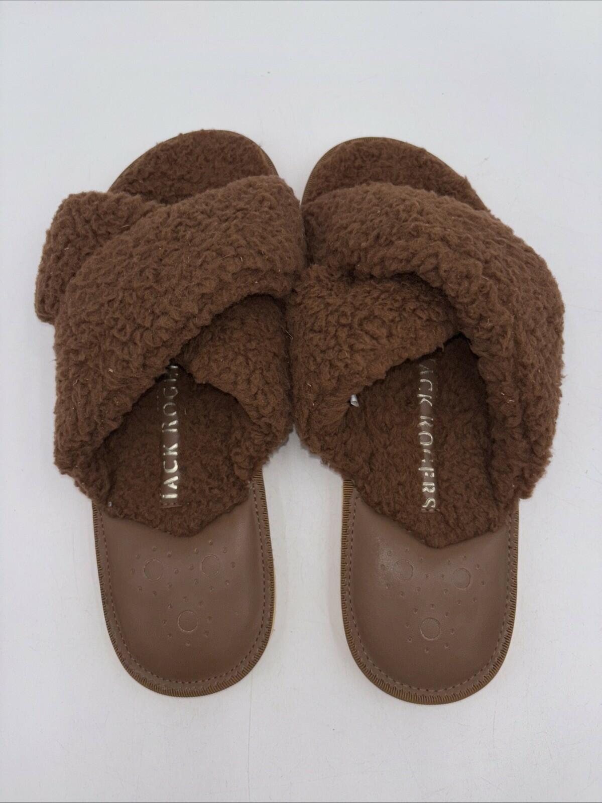 Jack Rogers Cozy Sloane Slippers Teddy Bear Brown Open Toe Flat Slides Size 9 M - Very Good - Ufashion