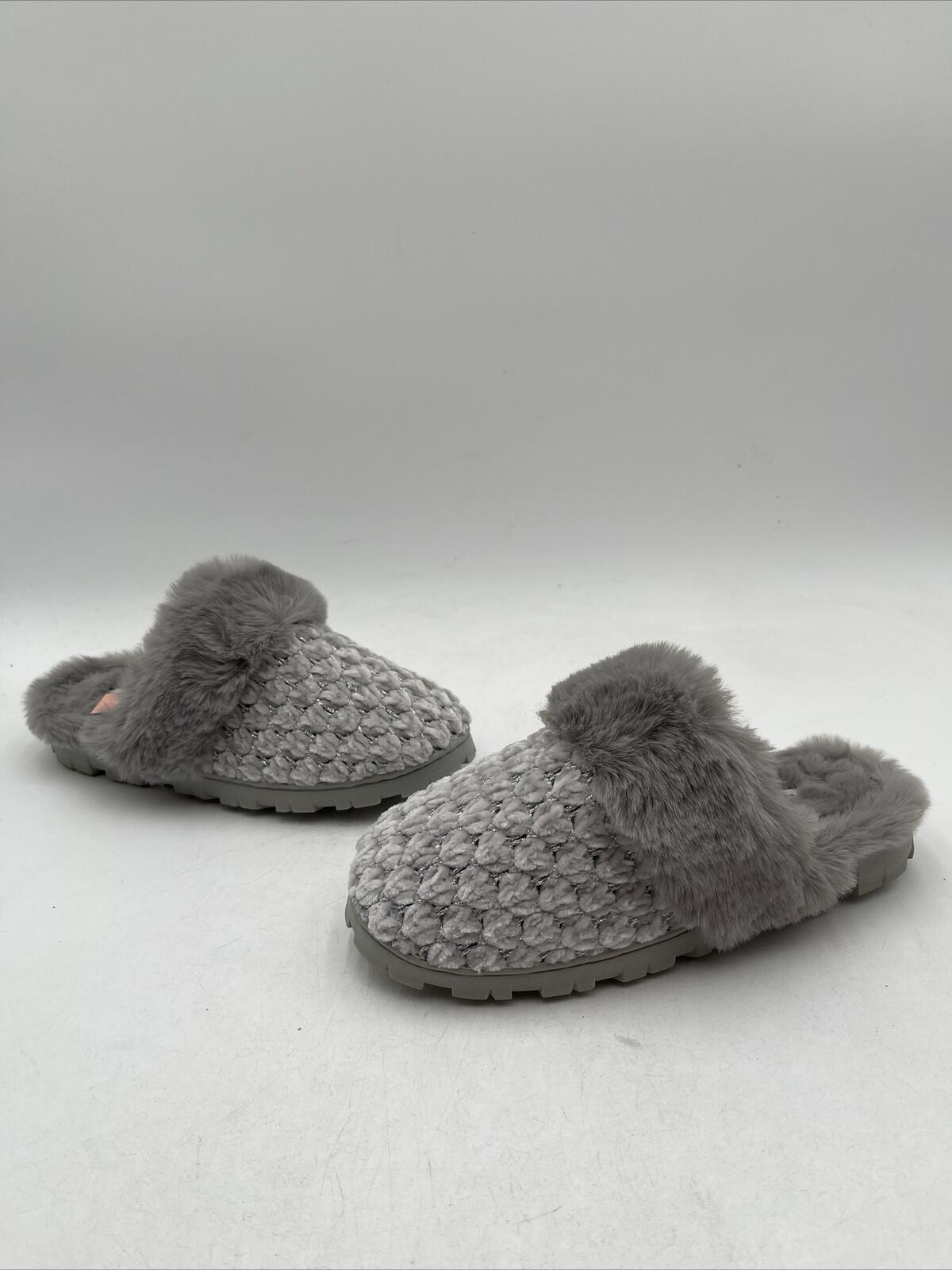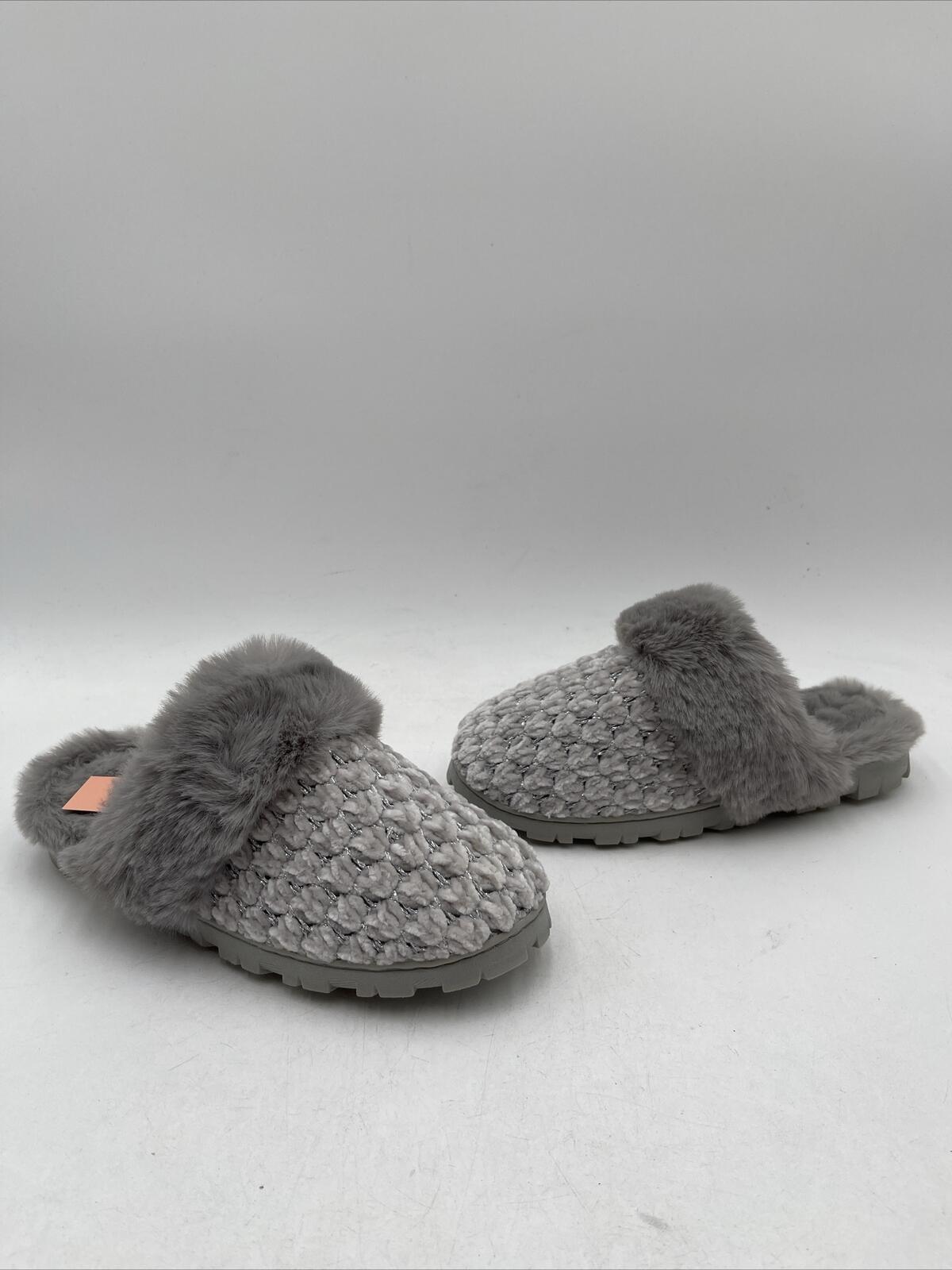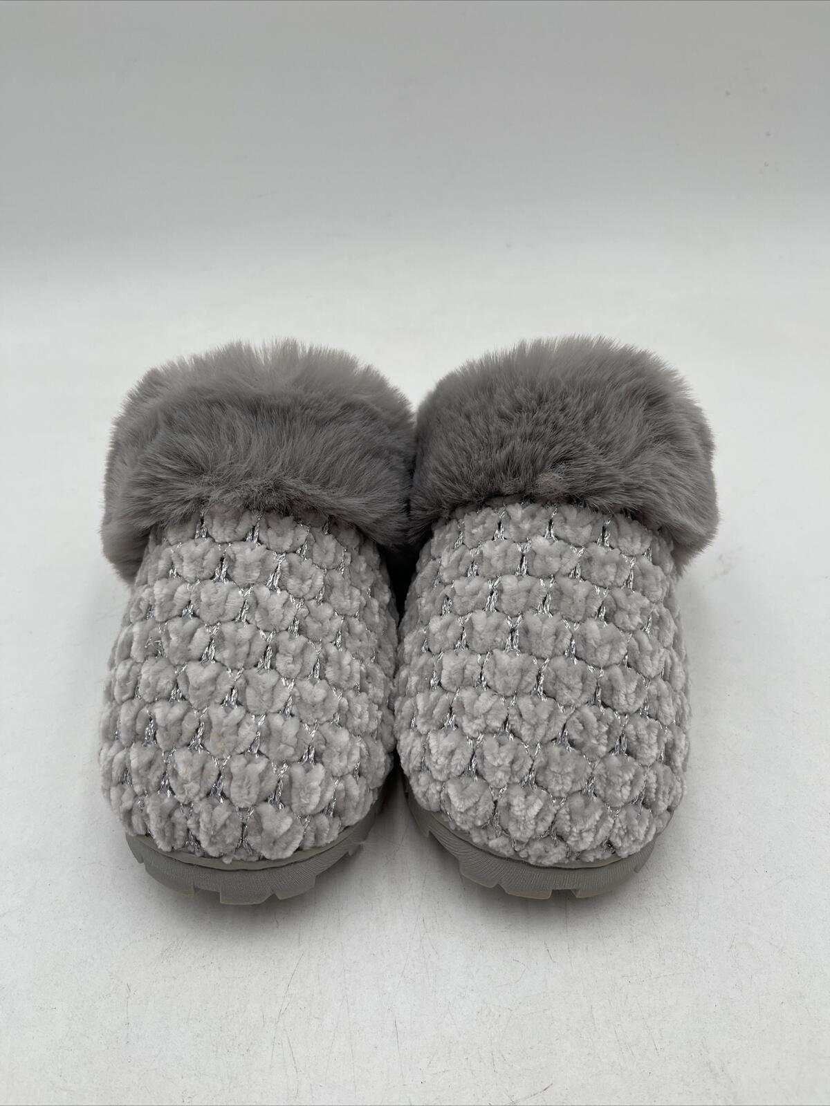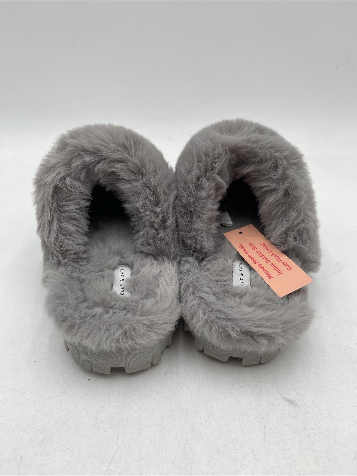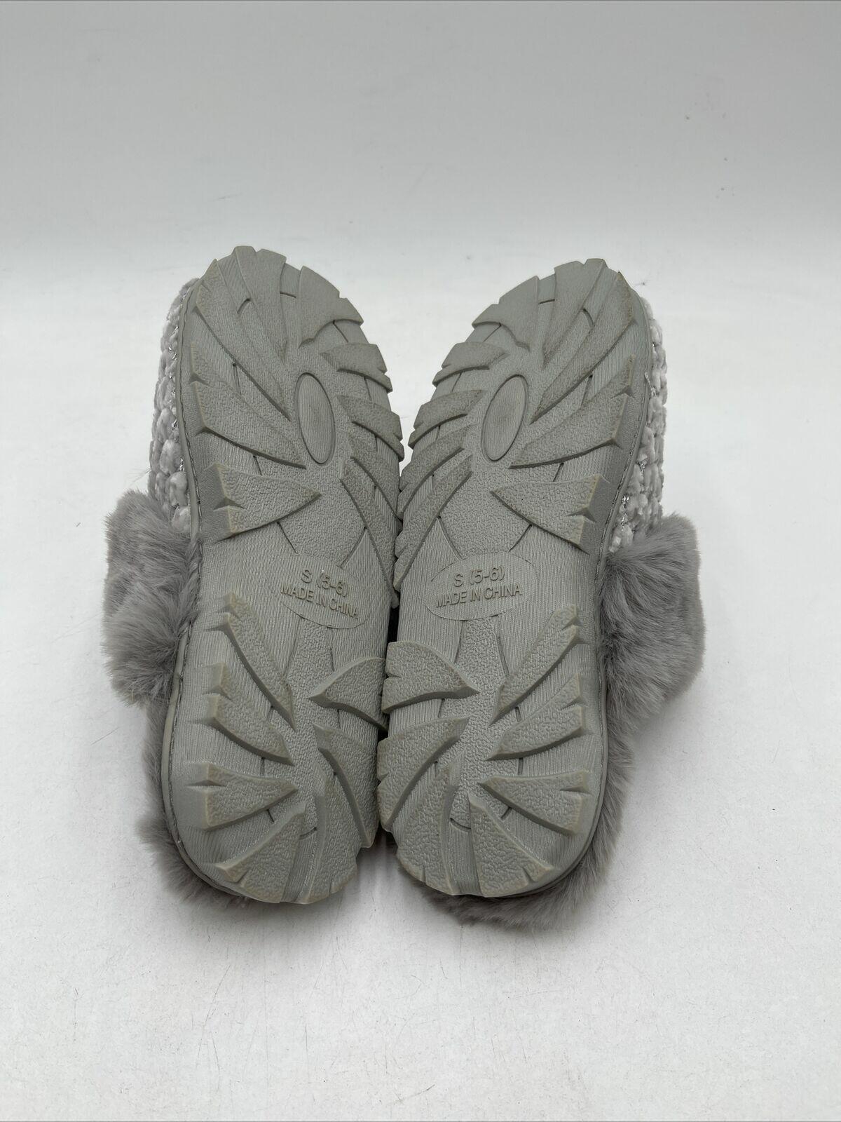 -Bottoms are lightly wornKelly & Katie Women's Kennedy Slipper is a gray flat shoe made of synthetic upper material. It has a metal theme and is available in US shoe size 5-6. The slipper also features silver fur and is designed for women.