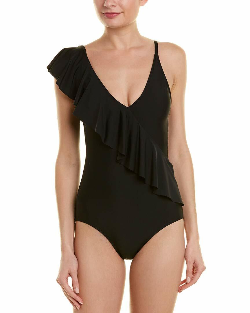 Athena Women's Asymmetrical Ruffle One Piece Swimsuit, Samba Black, Size 16 - Ufashion