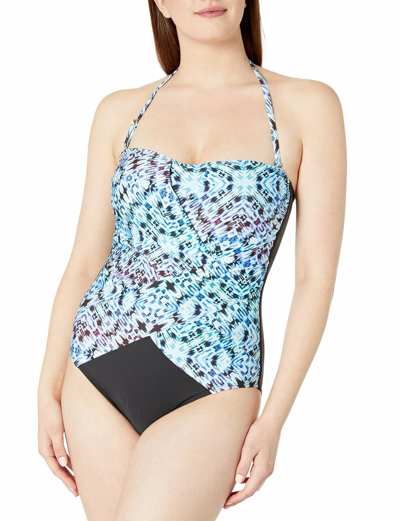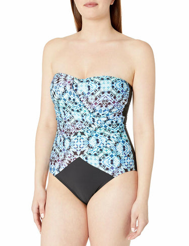 ATHENA Women's Strapless Bandeau One Piece Swimsuit, Indigo Essence Multi, 12