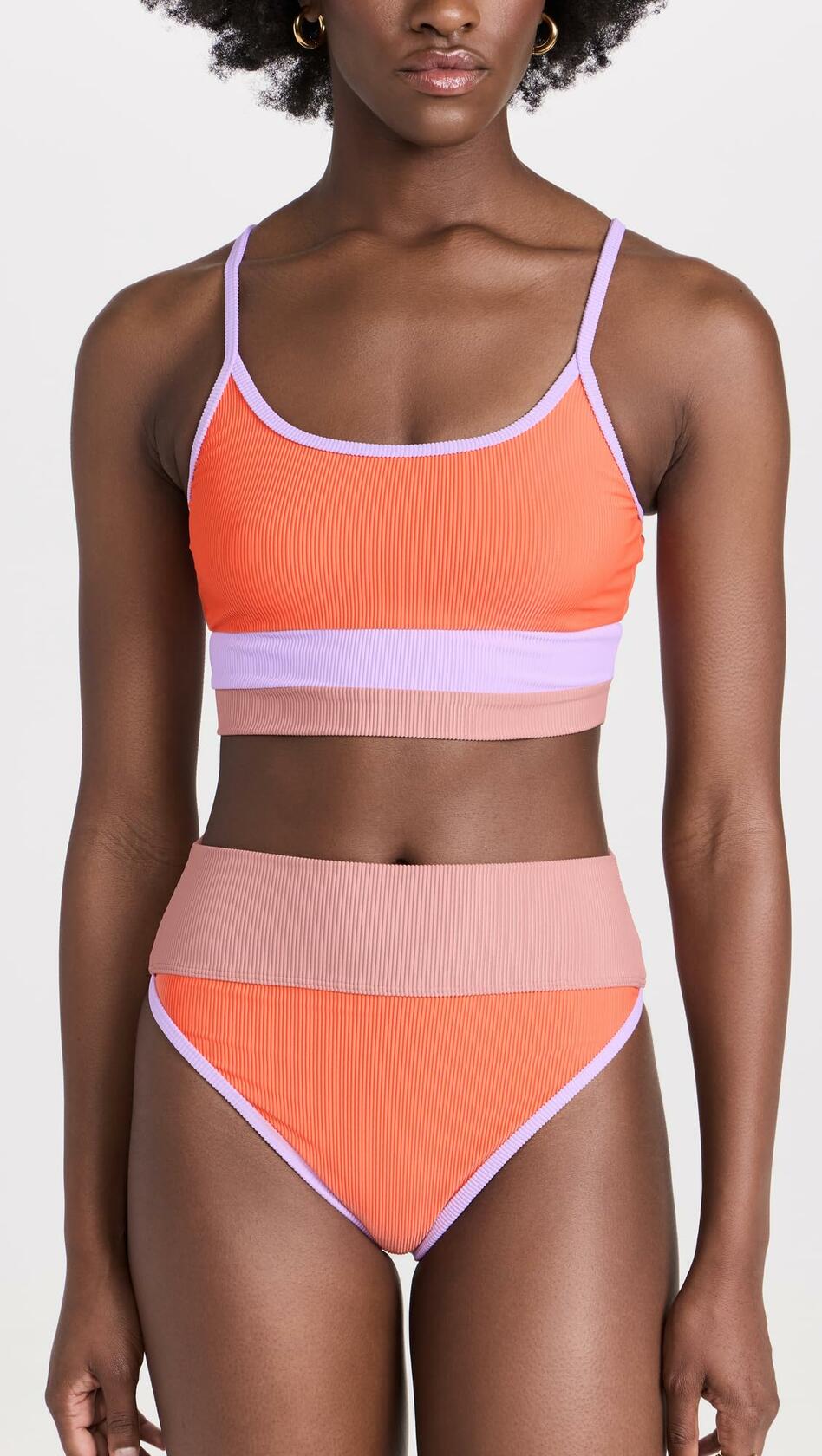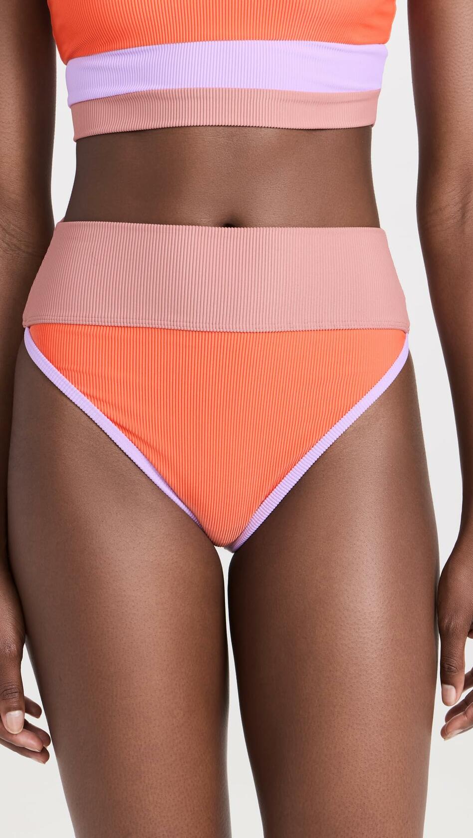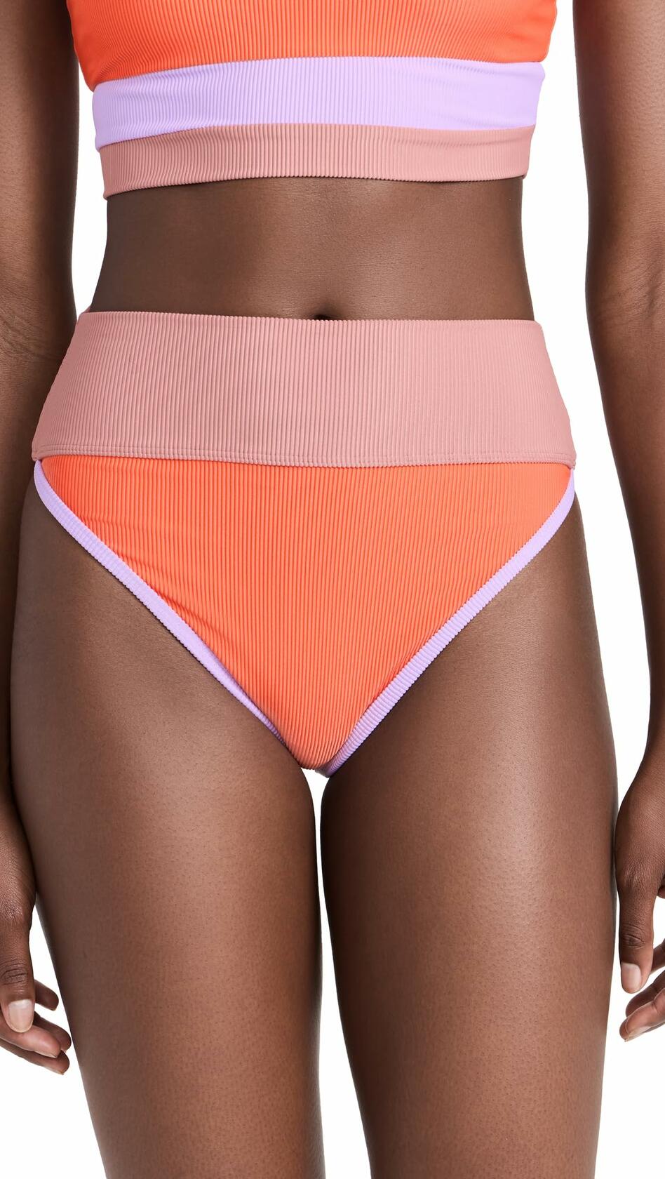 Beach Riot Women's Emmy Bikini Bottoms, Oasis Colorblock, Orange, L
