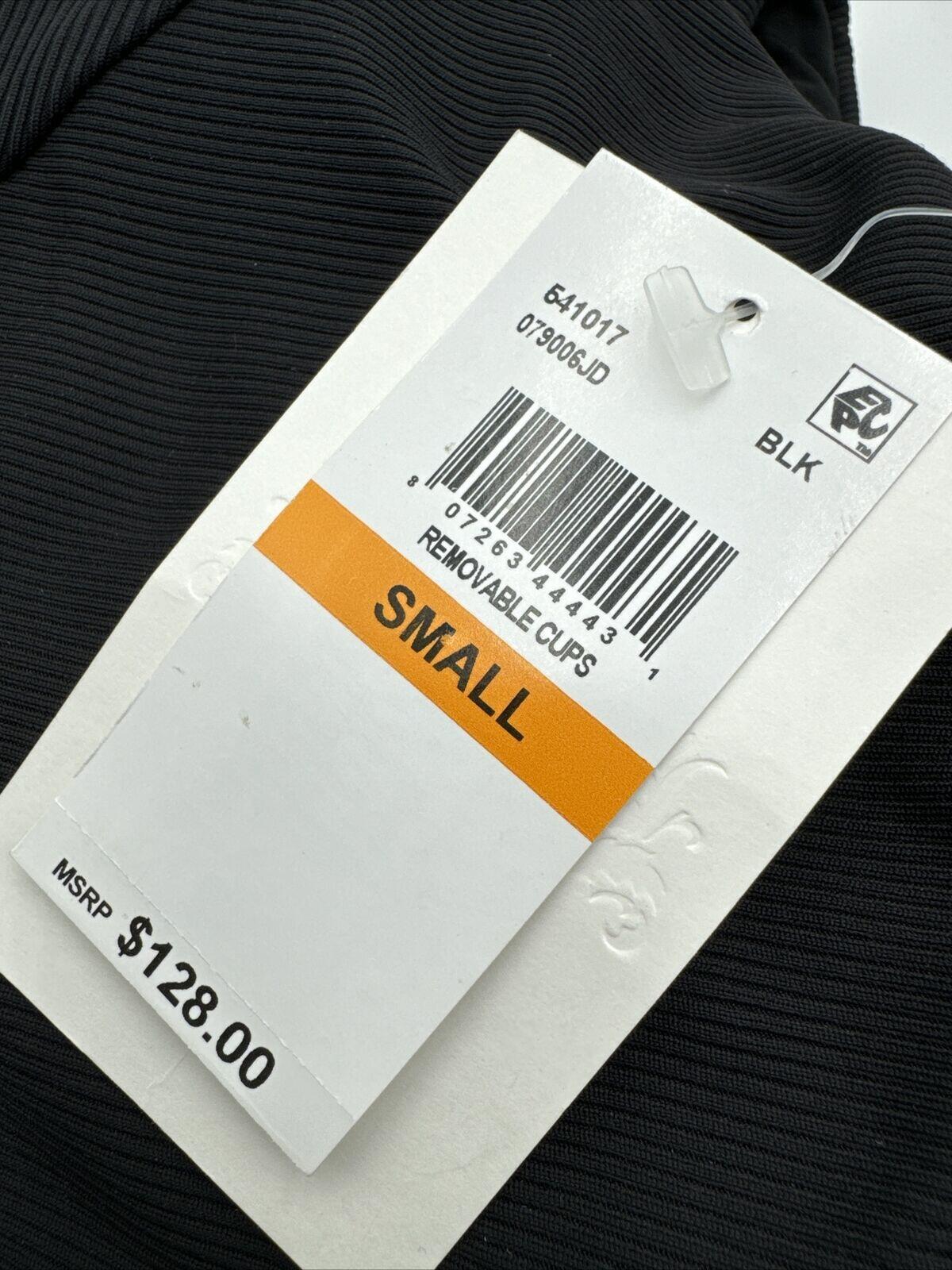 Make a statement at the beach with this stunning Becca By Rebecca Virtue Fine Line Rib Adeline One Piece Swimsuit in size S. The elegant combination of one wide strap with a backless design and tie in the back adds a touch of sophistication to this black solid (ribbed) swimsuit. The polyester lining and nylon material ensure comfort and durability.