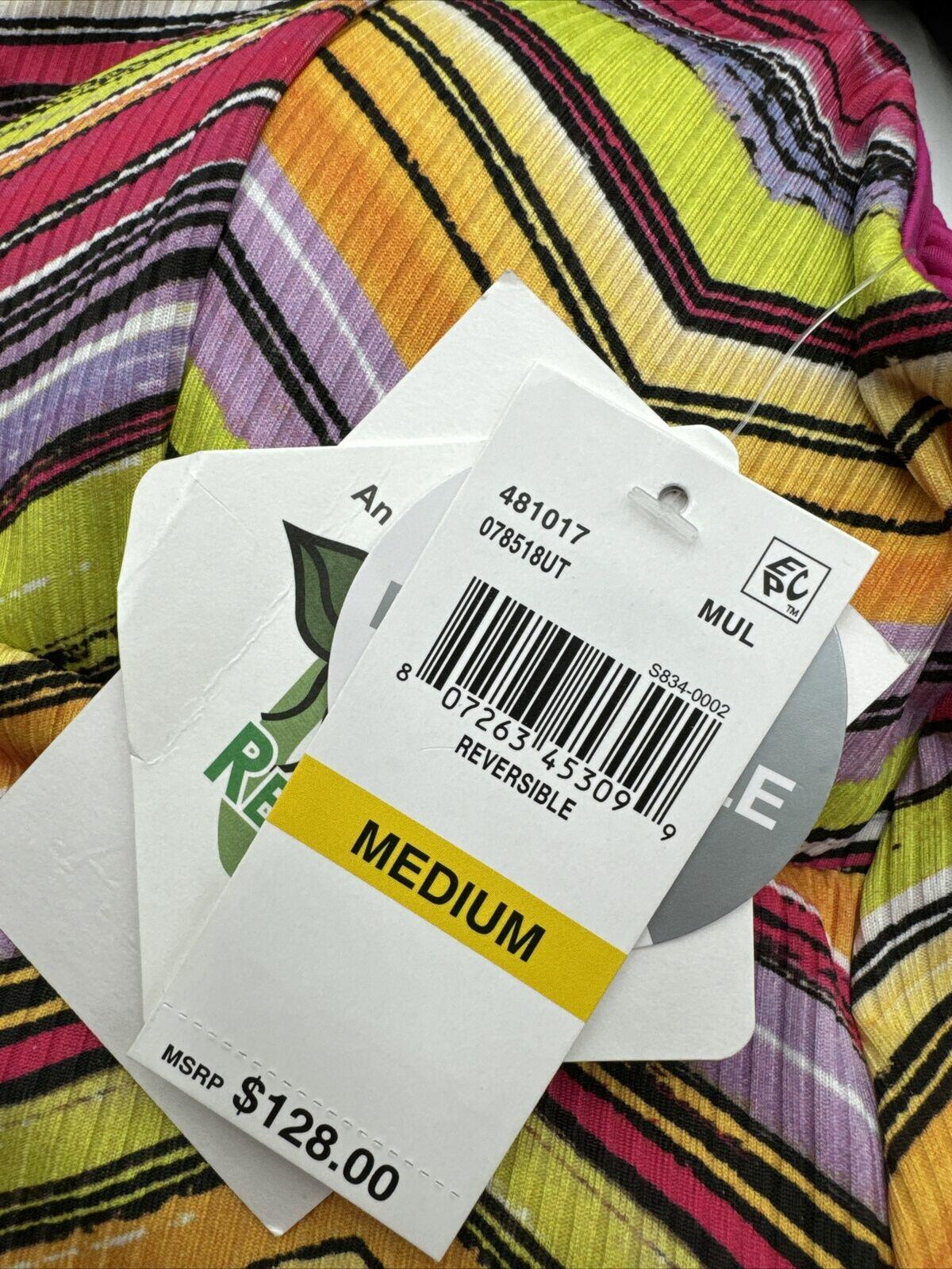 This swimsuit is perfect for women who love designer beachwear with colorful and bold themes. It has a swim top style that is perfect for any occasion. The swimsuit is new with tags and has never been worn. Don't miss out on this great opportunity to add this stylish swimsuit to your collection.