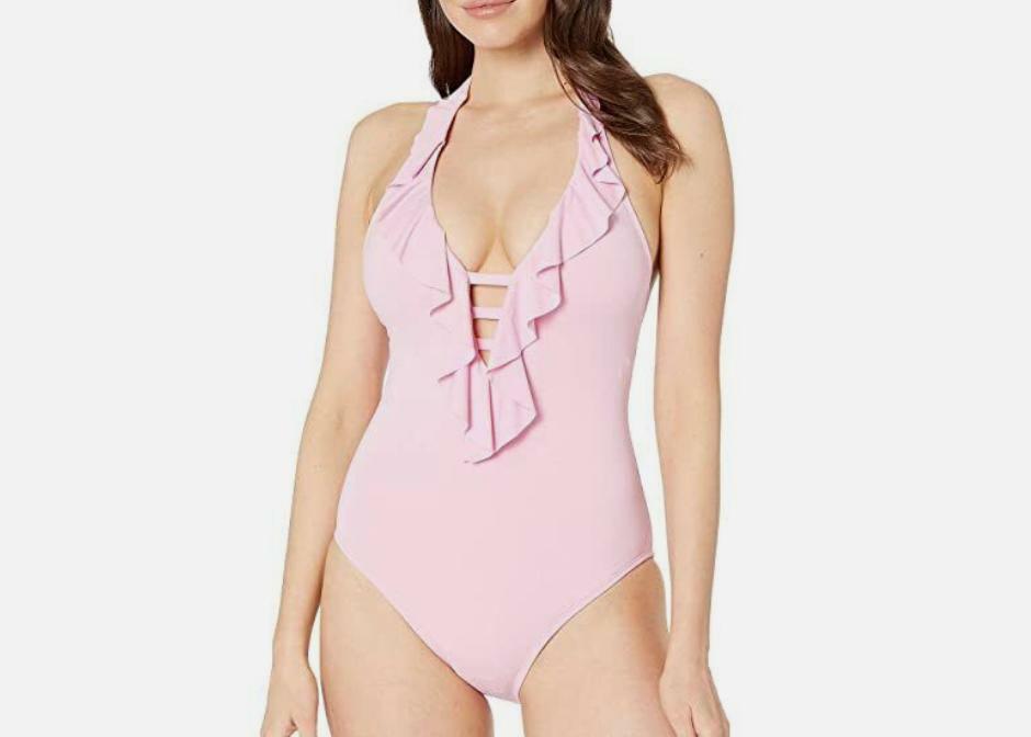 Elevate your beach look with the chic Bleu Rod BeattieA Plunge Ruffle Mio w/ Removable Cup swimsuit. One-piece swimsuit featuring a plunging neckline with tab accents, and detailed with a ruffled trim. Halter ties at the nape. Removable contour pads provide support and shape. Open back with strap details. Moderate rear coverage. Lined. 78% nylon, 22% spandex; Lining: 96% polyester, 4% spandex. Hand wash, line dry. Imported. Measurements: One Piece Length: 26 in Product measurements were taken using size 4. Please note that measurements may vary by size. If you're not fully satisfied with your purchase, you are welcome to return any unworn and unwashed items with tags intact and original packaging included.