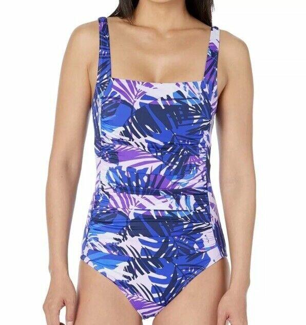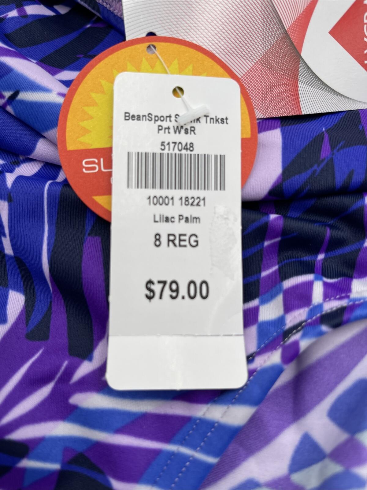 L.L.Bean BeanSport Square Neck Tanksuit Print Lilac Palm Womens Size 8