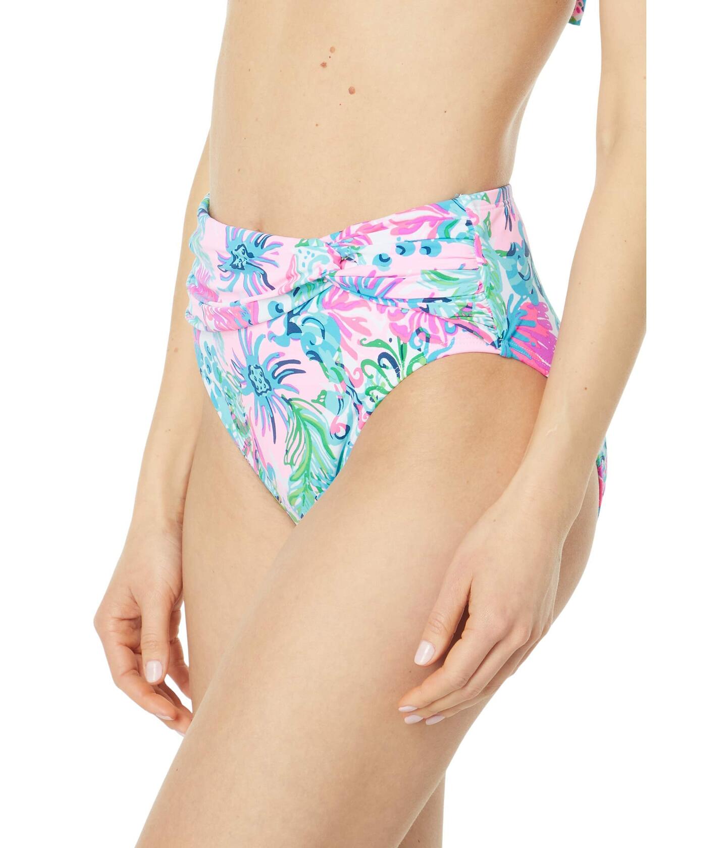 ABOUT LILLY PULITZER MEASUREMENTS Length: 24 in PLEASE TAKE NOTE OF THE FOLLOWING: Product measurements were taken using size 2. Please note that measurements may vary by size. If you're not fully satisfied with your purchase, you are welcome to return any unworn and unwashed items with tags intact and original packaging included. FEATURES YOULL LOVE: High-waisted bikini bottom with shirring and tie-front detail. Full coverage cut and twist detail. Top sold separately. Full rear coverage. Shirred waistband in all-over print. Nylon Spandex Knit Swim (75% Nylon, 25% Spandex). Waistband: 87% nylon, 13% spandex; Lining: 93% polyester, 7% spandex. Hand wash, line dry. Imported. A LITTLE ABOUT LILLY PULITZER: Lilly Pulitzer speaks to generations of rule-breaking sun-followers who celebrate the spontaneous bohemian spirit of Lilly Pulitzer. The company's effortless fashions are truly born from an original. It all happened by accident, when in 1959-ish Lilly Pulitzera stylish Palm Beach hostess and socialite whose husband Peter Pulitzer owned several Florida citrus grovesneeded a project of her own. With Peter's produce, she opened a juice stand. Lilly Pulitzer's business was a hit, but squeezing oranges, lemons, limes, and pink grapefruit made a mess of her clothes. So Lilly asked her dressmaker to design a dress that would camouflage the stains. The result? A comfortable sleeveless shift dress made of bright, colorful printed cotton. Although her customers liked Lilly's juice, they loved her shift dresses. Soon Lilly decided to stop squeezing and focus on designing and selling her "Lillys." Lilly Pulitzer became a fashion sensation and a creator of authentic American resort wear as we know it. The brand is now more popular than ever and continues to create authentic printed styles.