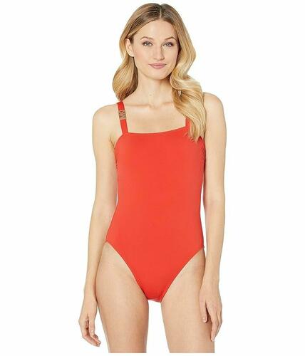 MICHAEL Michael Kors Logo Solid Square Neck One-Piece Persimmon Size 6