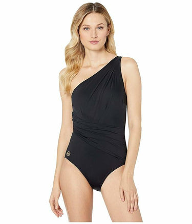 MICHAEL Michael Kors Solids One Shoulder Shirred One-Piece Black Size 4 - Ufashion