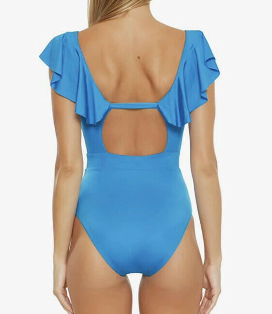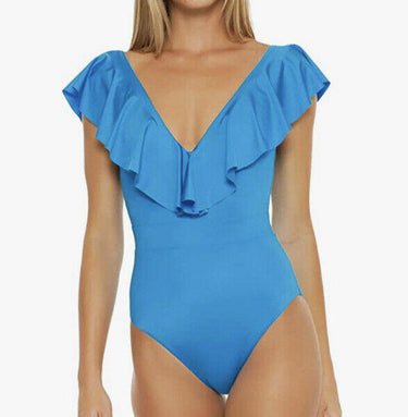 NWD  Trina Turk Women's Standard Monaco Ruffle One Piece, Adriatic Blue Size 12 - Ufashion NWD Trina Turk Women's Standard Monaco Ruffle One Piece, Adriatic Blue Size 12 - Ufashion