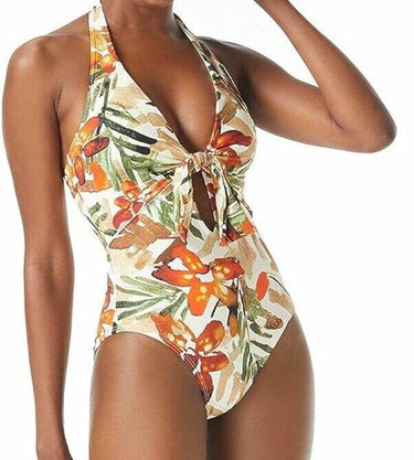 NWD Vince Camuto BONE Seychelles Floral Tie Front Halter One-Piece Swimsuit 8 - Ufashion NWD Vince Camuto BONE Seychelles Floral Tie Front Halter One-Piece Swimsuit 8 - Ufashion