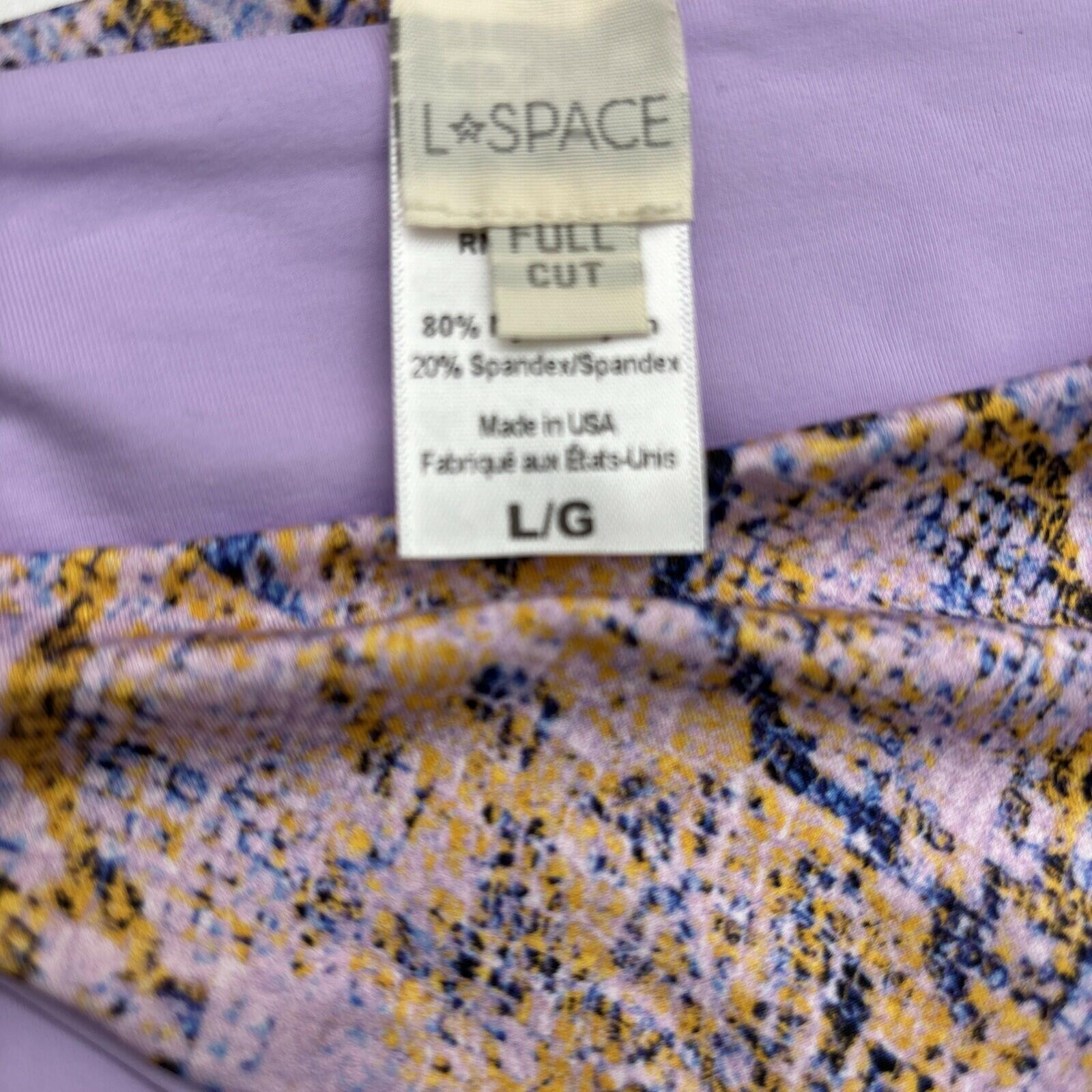 Get ready to make a statement at the beach with this NWOT Lspace Women's Roxette Full Bikini Bottom in Purple Multi, Size L. The eye-catching animal print pattern and trendy ring accent make this bottom a must-have for any fashion-forward woman. Made with lightweight nylon material, it's perfect for long days spent lounging by the water.