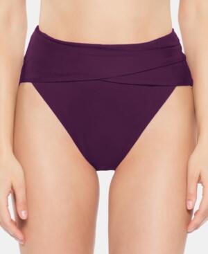Becca by Rebecca Virtue Women's Color Code High Waist Bikini Bottom, Purple/Merlot, Size Large