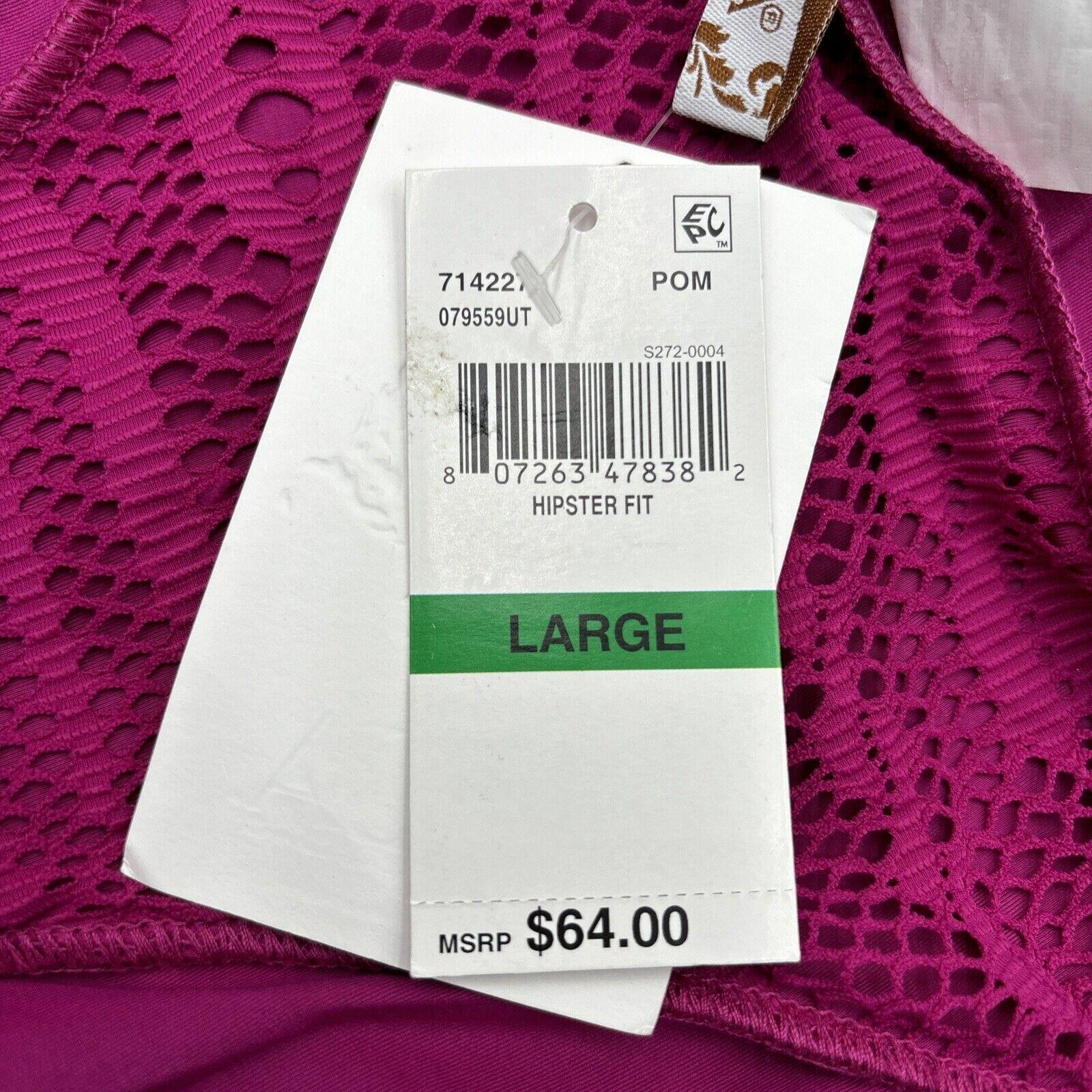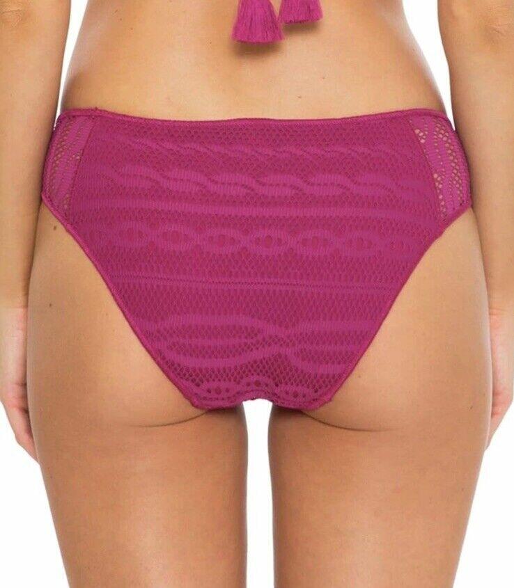 NWT Becca Women’s Adela Tab Side Hipster Bikini Bottom, Pomegranate Size L