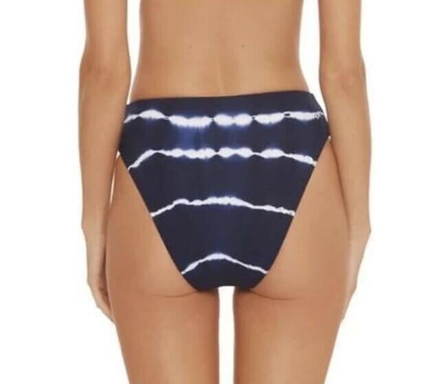 NWT Becca Womens Danielle Tie Dye Banded High Waist Bikini Bottom, Marina Size S