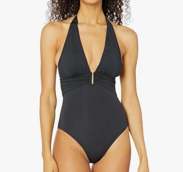 NWT Bleu Rod Beattie All About U Plunge Halter Mio One-Piece Black Size 6