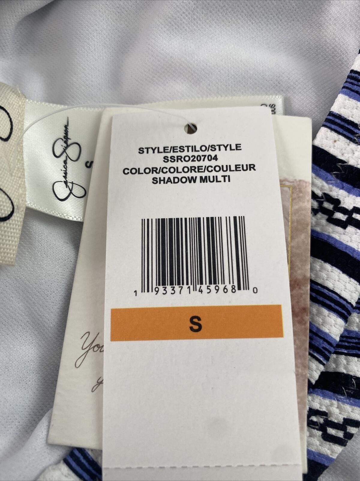 NWT Jessica Simpson Womens Striped Ruched Hipster Swim Bottom Shadow Size S. Condition is new with tags. Shipped with USPS First Class.
