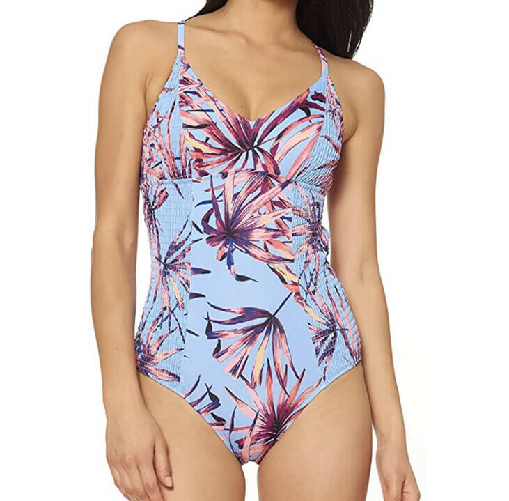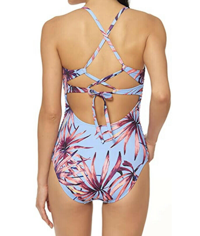 NWT Jessica Simpson Women's V Neck One Piece Swimsuit, Lilac Palm Size M