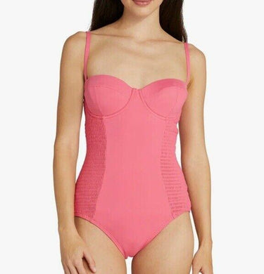 NWT Kate Spade Women's Solids Smocked Underwire One Piece Swimsuit Pink Size S